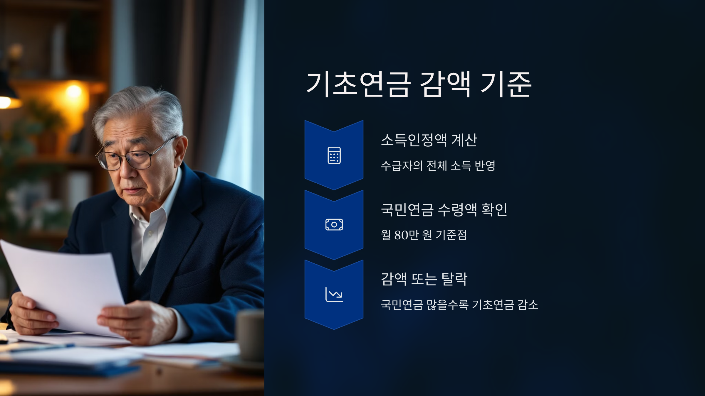 특히 국민연금이 월 80만 원을 넘는 경우에는 기초연금 감액 또는 수급 탈락 가능성이 높아지게 됩니다.