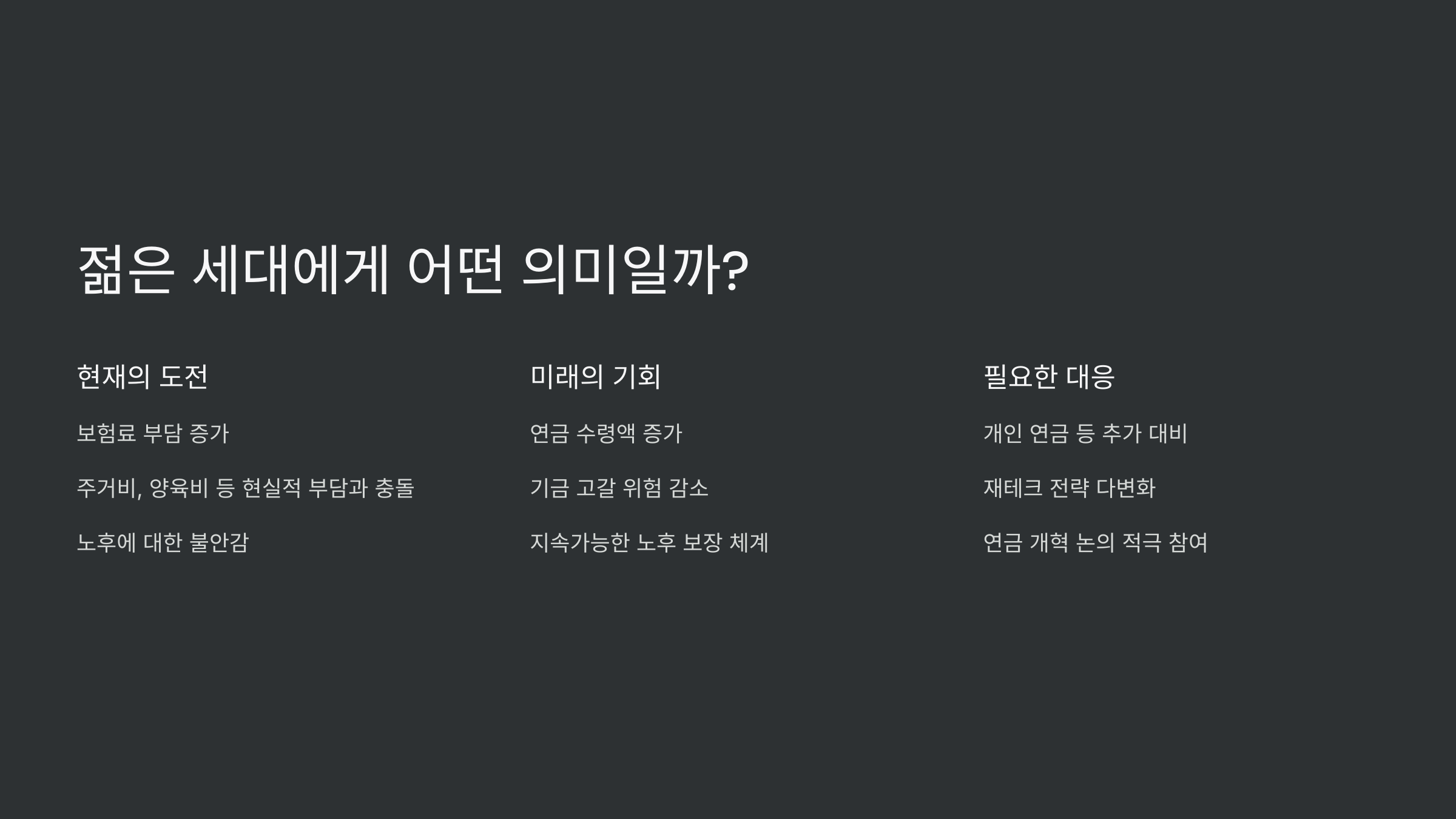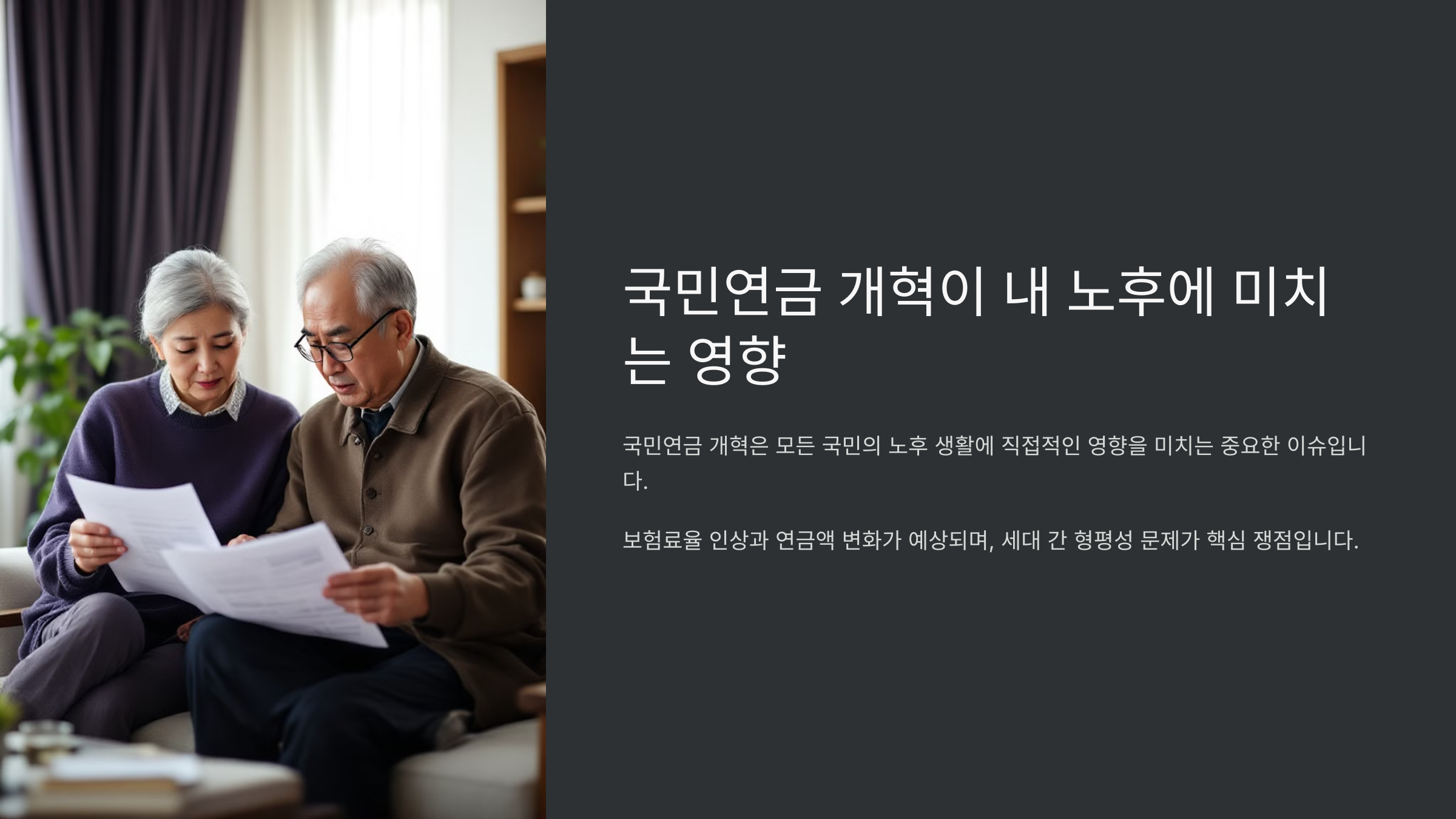 내가 생각했을 때, 지금 가장 필요한 건 제도에 대한 젊은 세대의 목소리가 반영되는 구조예요. 이번 개혁에서는 그 출발선이 마련됐고, 향후 연금특위 등에서 세대별 의견을 더 적극적으로 반영해야 할 시점이 아닌가 싶어요.