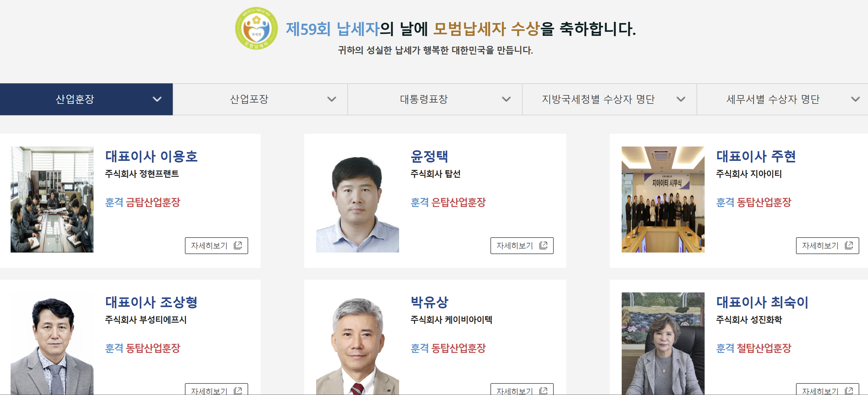 마지막으로 국세청 본청에서 최종 심사를 진행한 후 모범납세자를 발표해요.