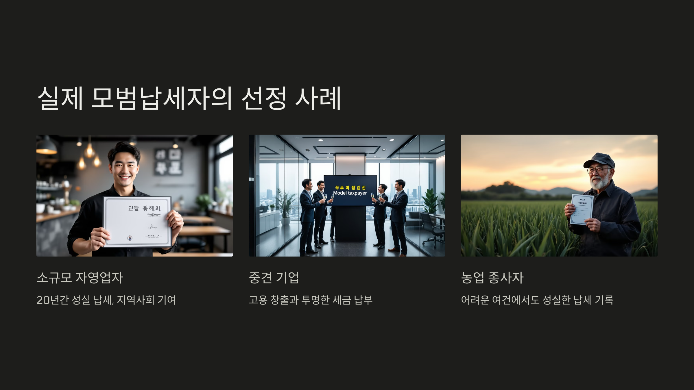 모범납세자로 선정되기 위해서는 철저한 서류 준비와 성실한 납세 이력이 중요해요. 이제 다음 섹션에서 실제로 모범납세자로 선정된 사례를 살펴볼까요? 😊