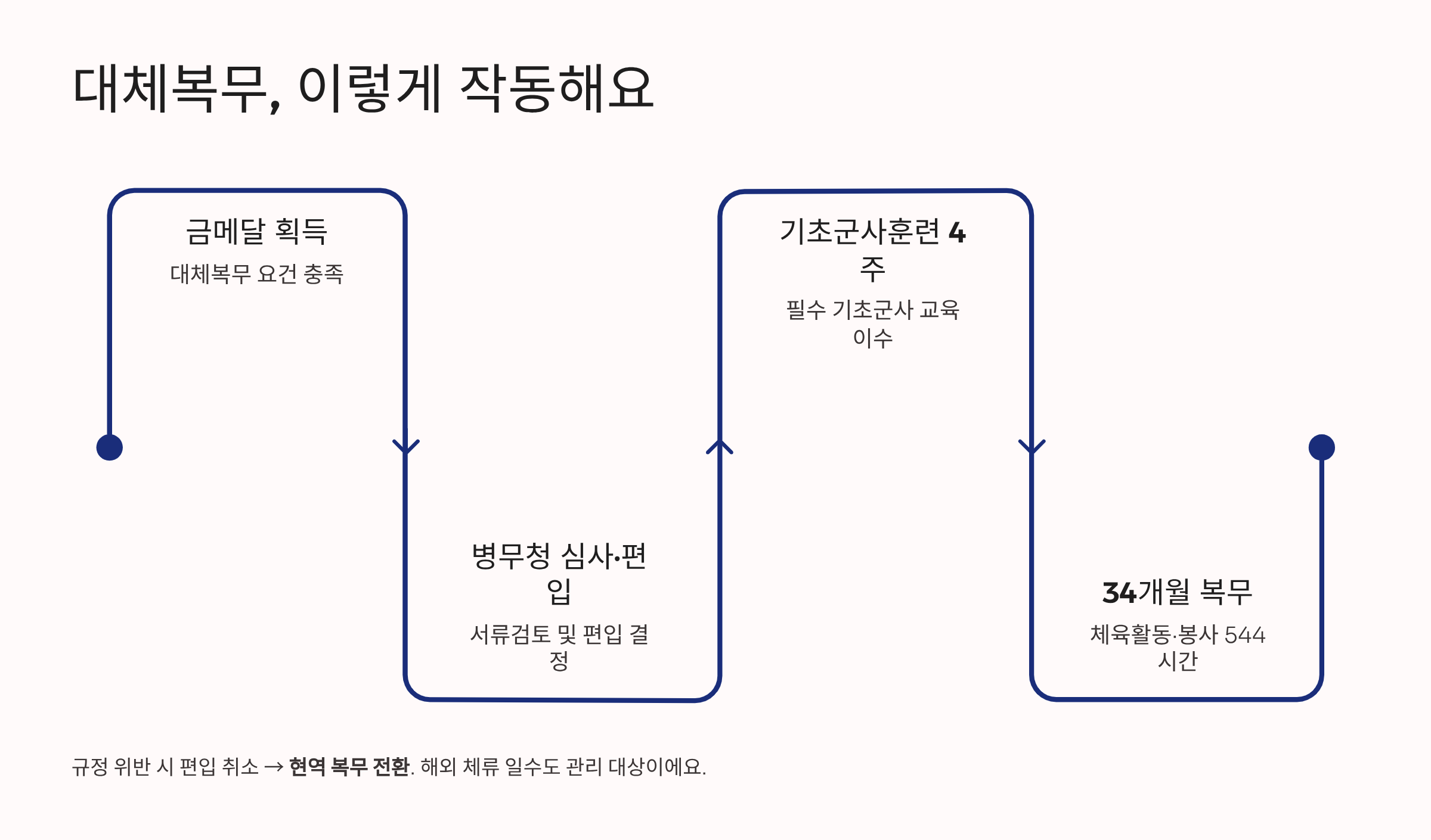 이 제도는 병역법에 근거해 운영돼요. 국가 위상을 높인 체육인에게 병역 의무를 다른 방식으로 이행하도록 허용하는 제도예요. 2025년 현재도 동일한 틀이 유지되고 있어요. 이제 구체적인 조건을 하나씩 살펴볼게요.