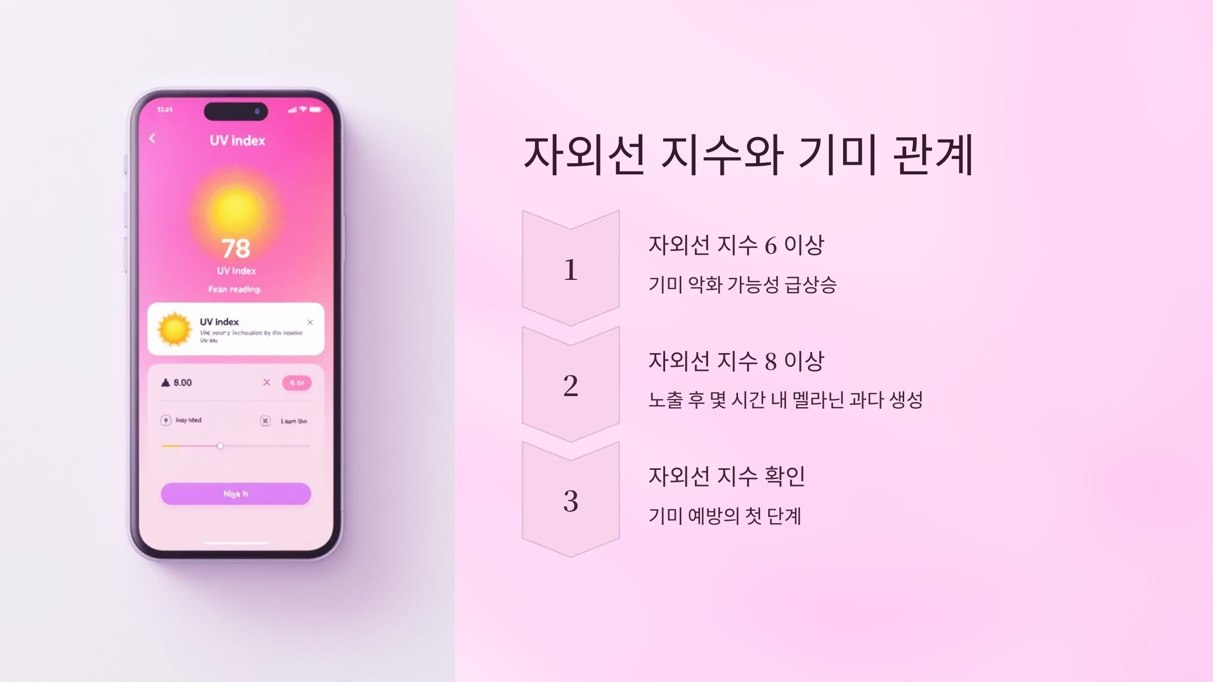 자외선 지수 체크는 기미 예방의 시작이에요. 기온보다 ‘자외선 지수’를 먼저 확인하는 습관을 들이세요!