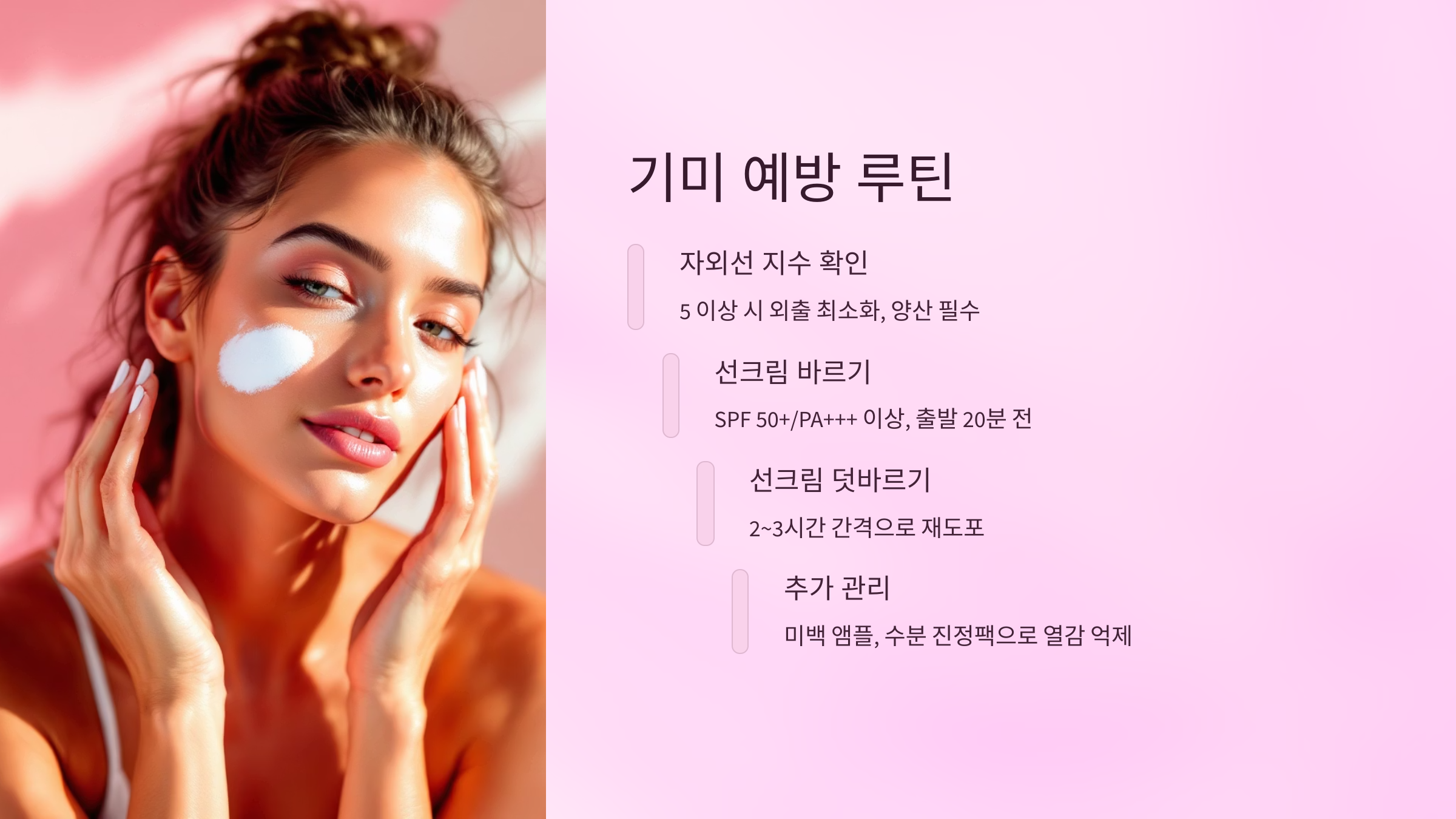 - ✔ 자외선 지수 6 이상은 예방 루틴 강화