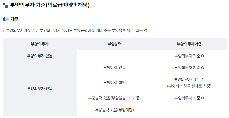 또한, 의료급여에 한해 부양의무자 기준이 적용돼요. 부양의무자는 수급권자의 부모나 자녀와 같은 직계혈족으로, 부양능력 여부에 따라 수급자 자격이 달라질 수 있어요.