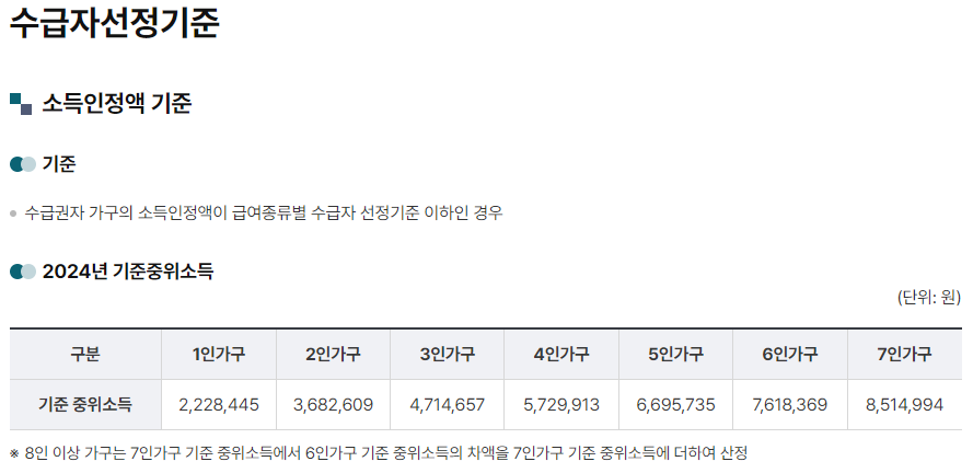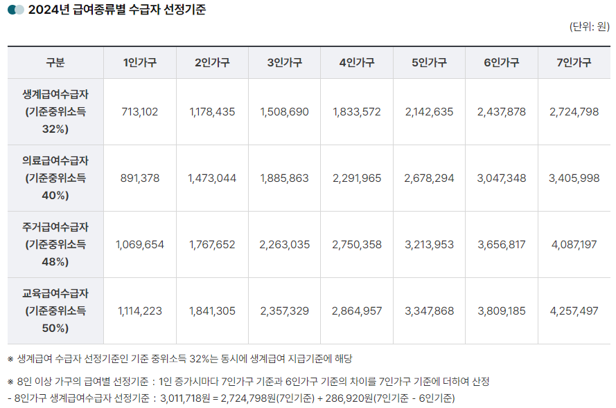 📊 2024년 기준중위소득 및 급여별 수급자 선정 기준