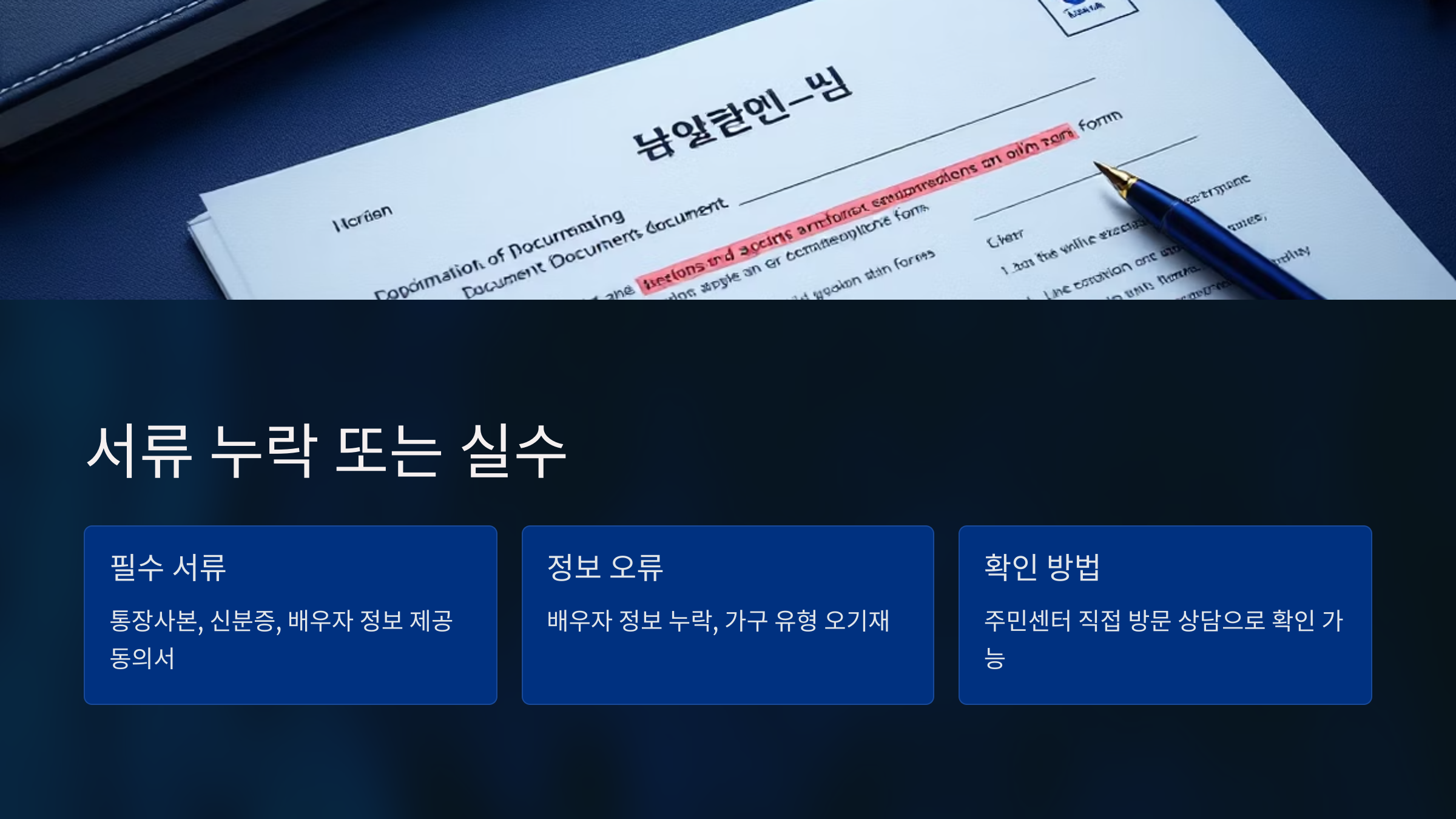 또한 배우자 정보가 누락되거나, 가구 유형을 잘못 기재해도 문제가 발생합니다.