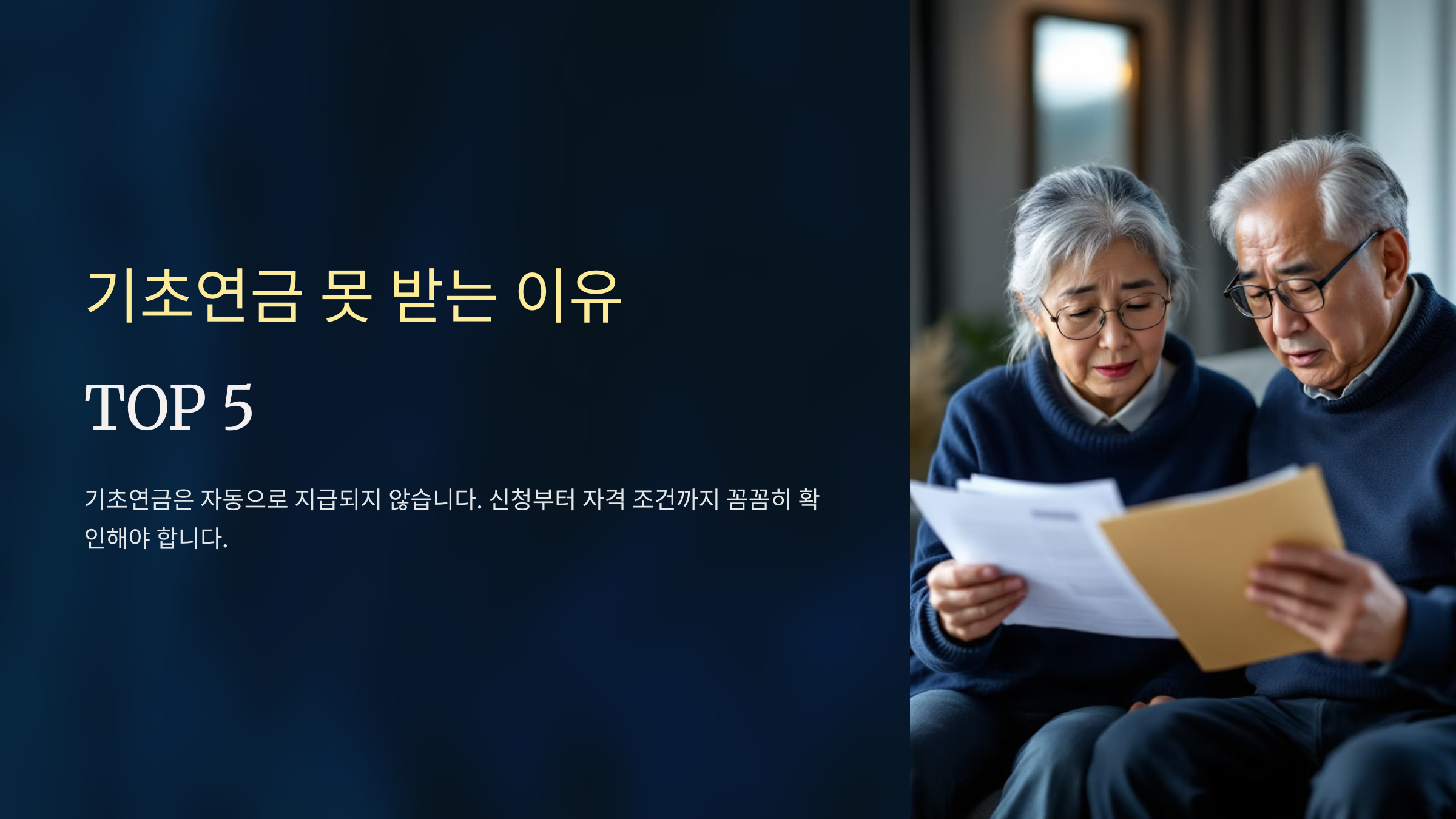 오늘은 실제 수급 실패 사례 5가지와 함께 기초연금을 받기 위해 반드시 확인해야 할 포인트를 정리해드릴게요.