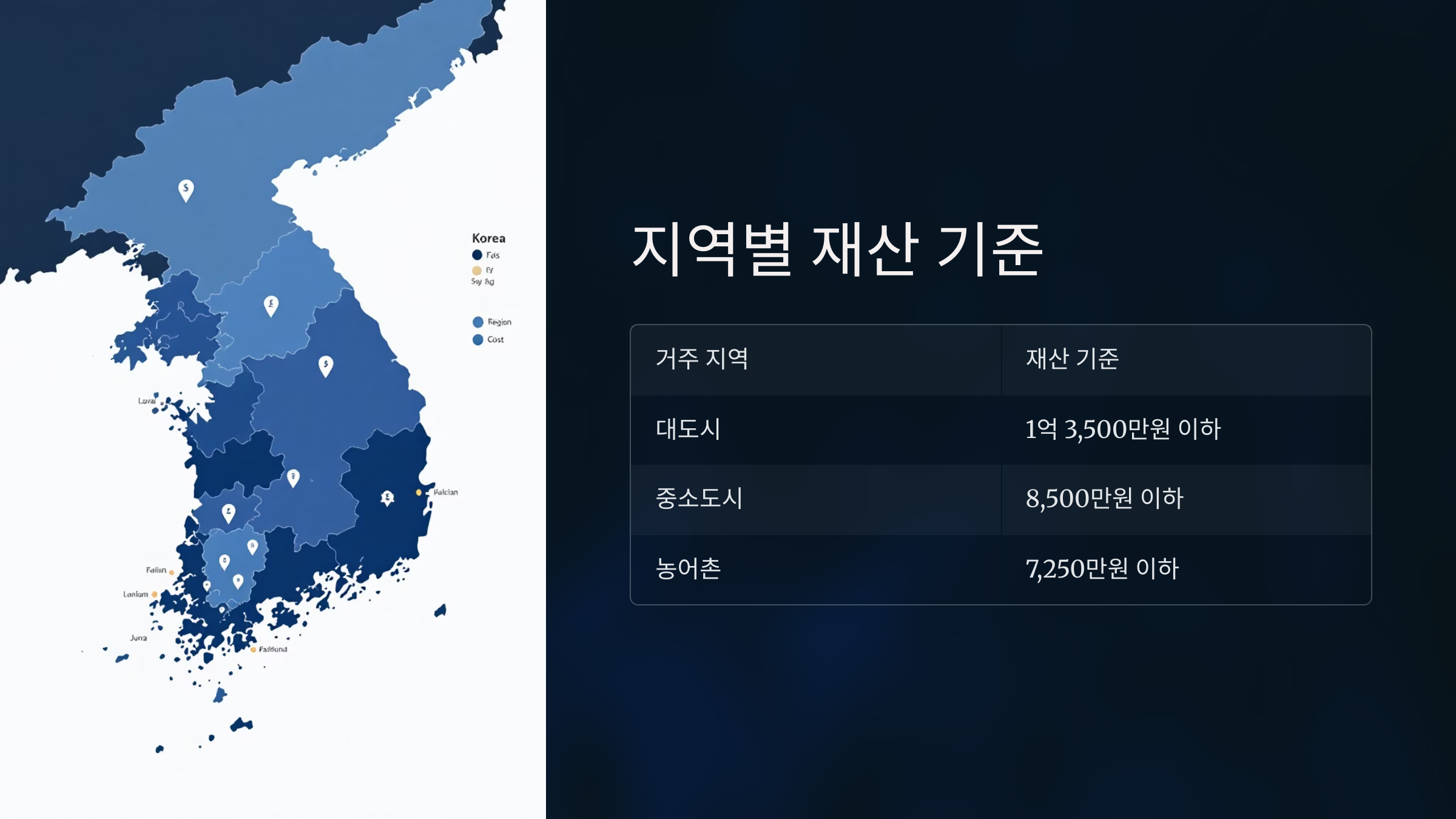 | 농어촌 | 7,250만 원 이하 |