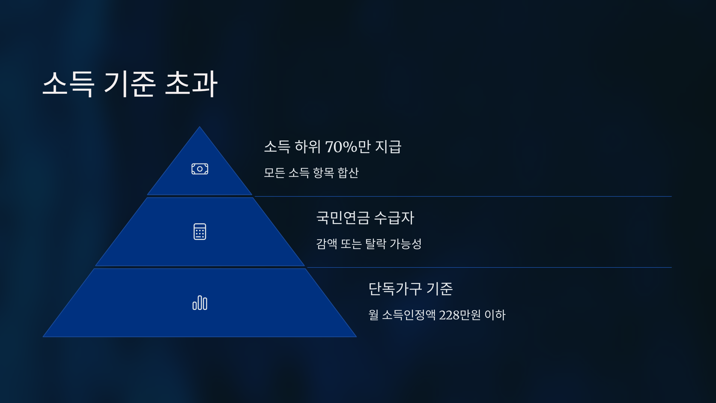 ✅ 단독가구 기준 월 소득인정액 228만 원 이하일 때 수급 가능성이 높습니다.