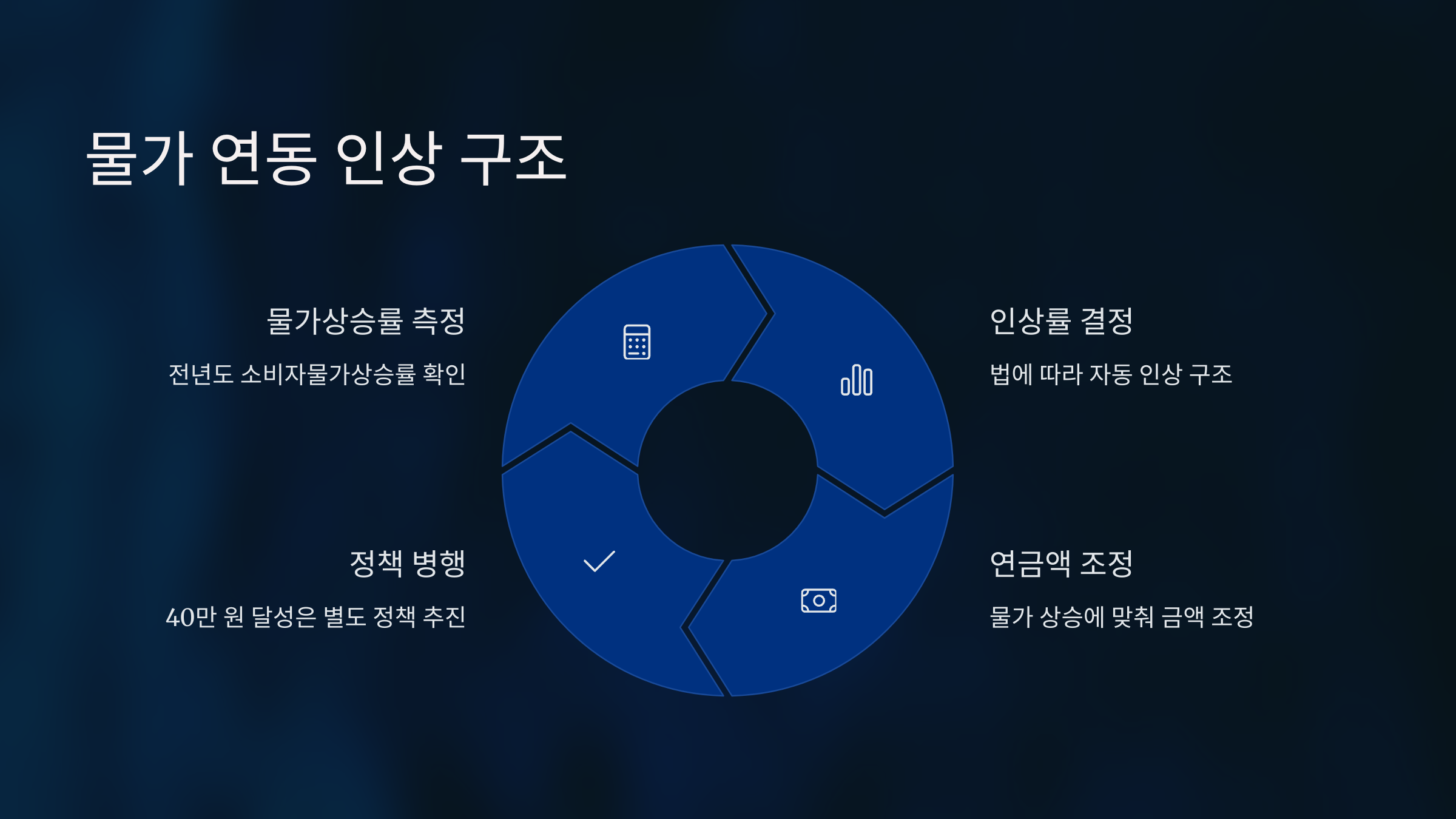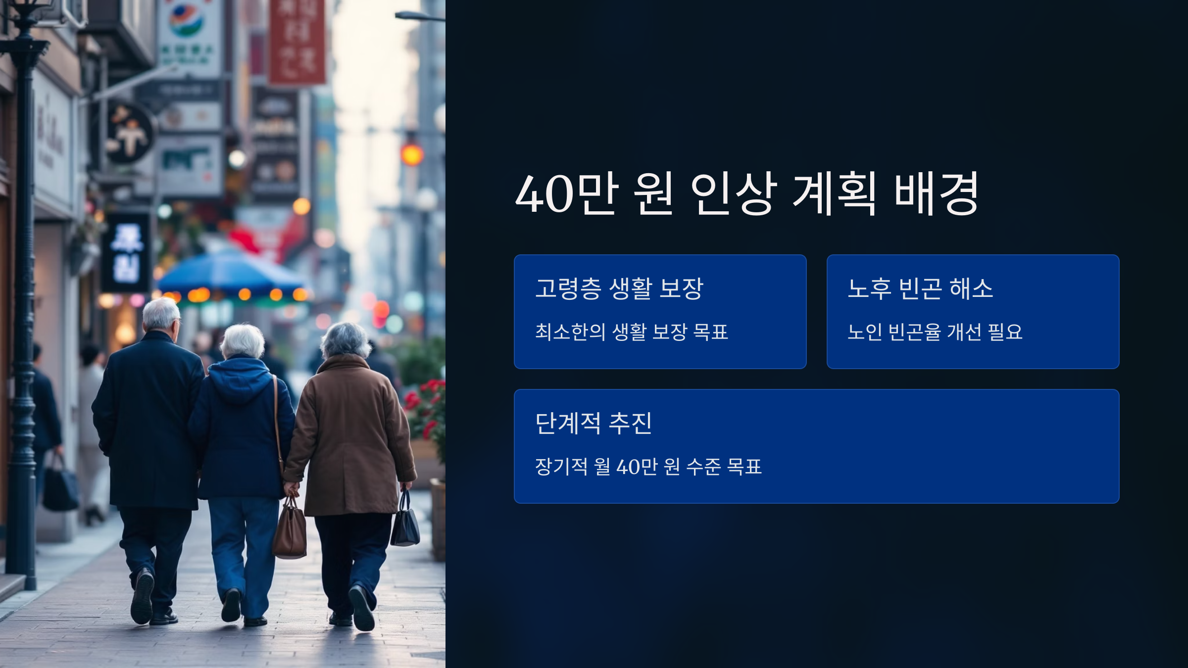- ✔ 다만 40만 원 달성은 별도 정책 추진으로 병행 예정
