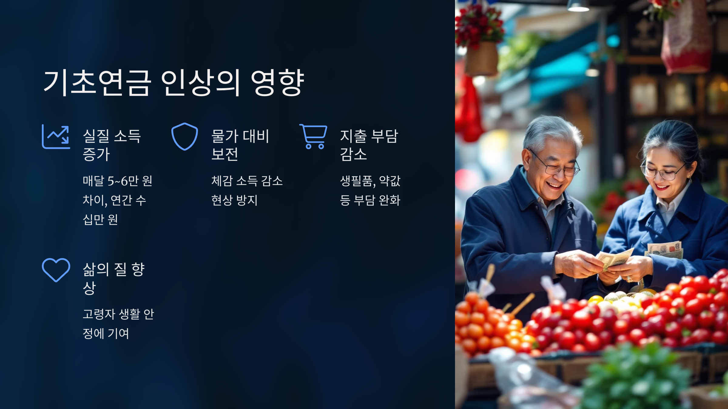 - ✔ 예: 물가 2.5% 상승 시 → 기초연금도 약 2.5% 인상