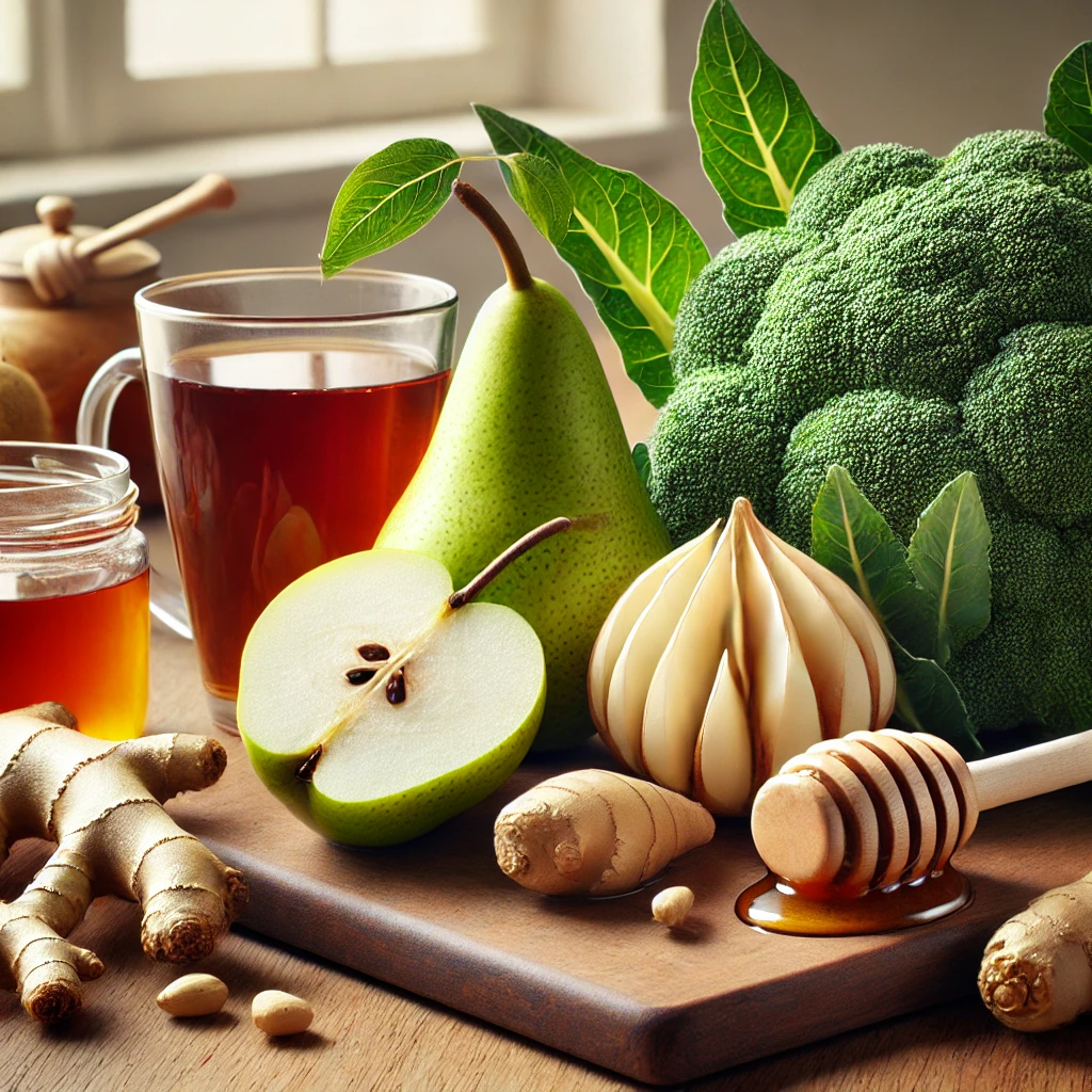 그렇다면 어떤 음식이 기침과 가래 완화에 도움이 될까요? 🍐🍯