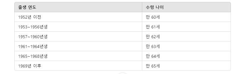 - 수령 연령: 출생 연도에 따라 법정 수령 나이가 달라지며, 고령화에 따른 연금제도의 변화로 수령 나이는 점진적으로 상향 조정되고 있습니다.