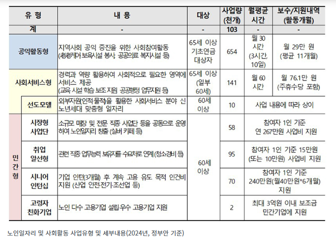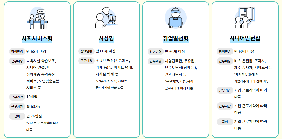 2025년 노인 일자리 종류 유형 급여 자격 신청 방법
