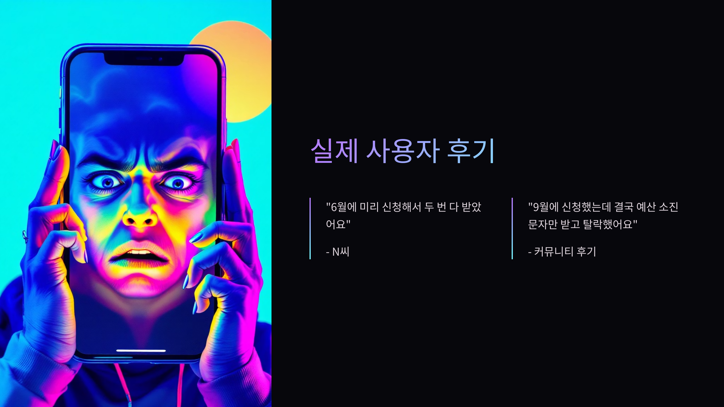 → “9월에 신청했는데 계속 심사 중… 결국 예산 소진 문자만 받고 탈락했어요.”