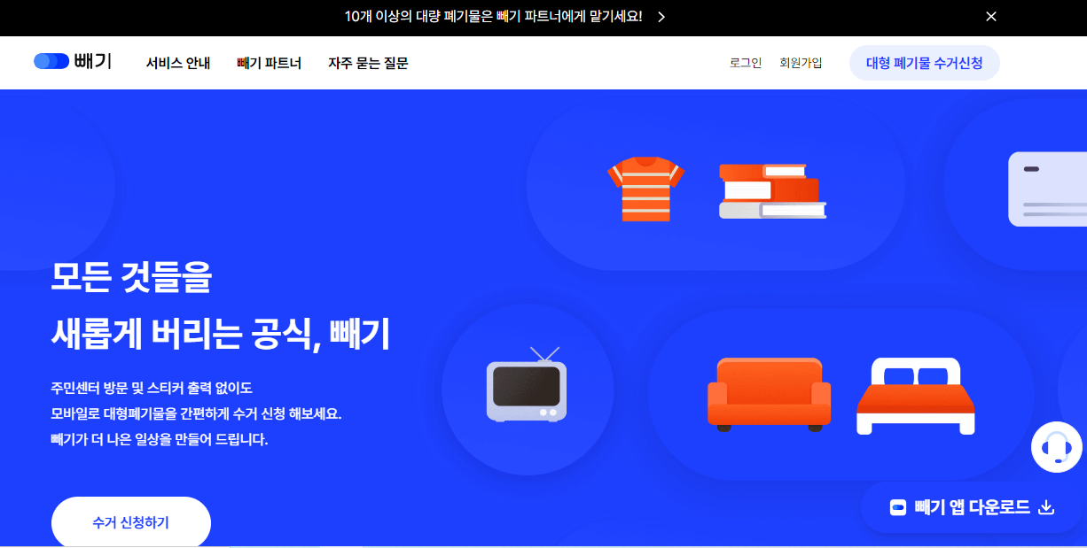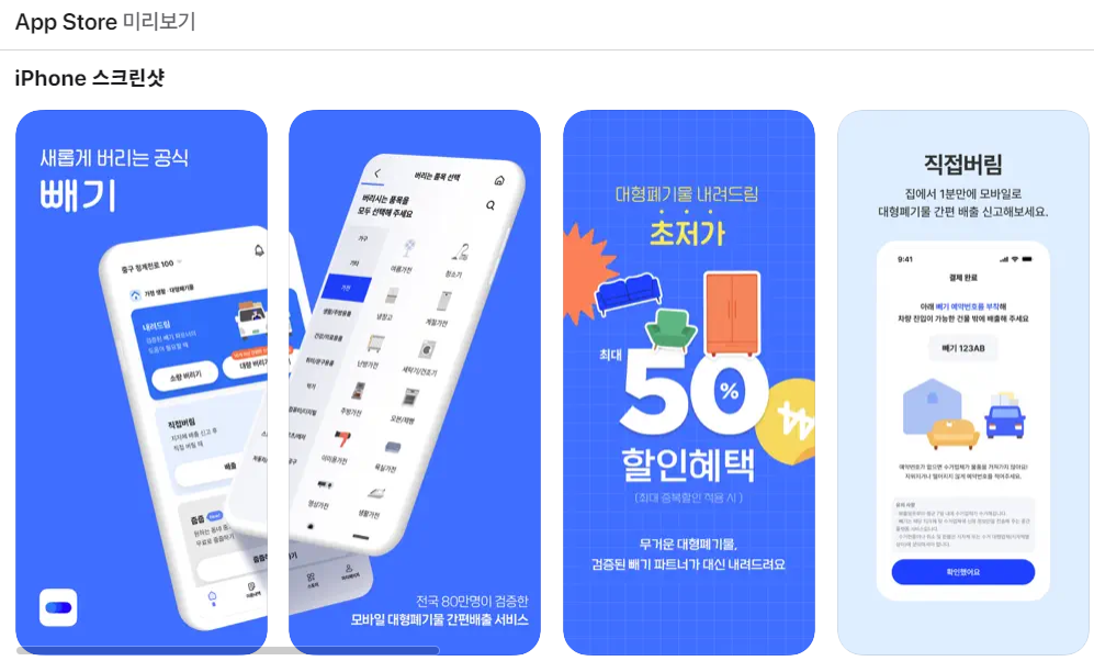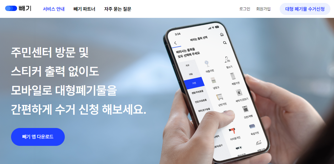 '빼기'와 같은 모바일 앱을 통해 대형폐기물 배출을 신청할 수 있어요. 앱에 사진을 업로드하면 견적을 받고, 배출 방법도 쉽게 확인할 수 있답니다.