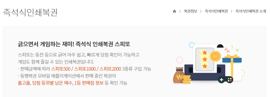 일반 복권처럼 번호 추첨을 기다리지 않아도 된다는 점이 큰 장점입니다.
