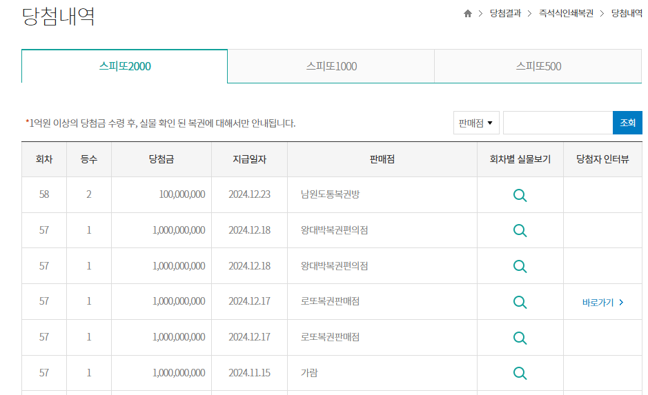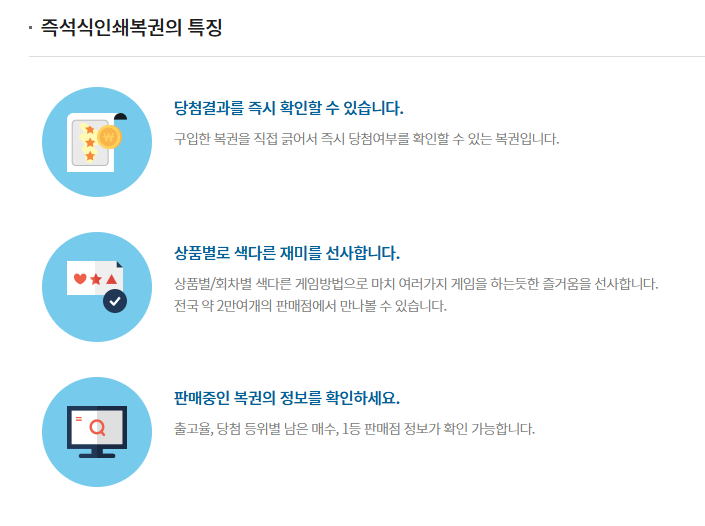 즉석복권은 확인 즉시 당첨금 지급이 가능하니 판매점에서 확인 후 바로 수령할 수 있습니다.