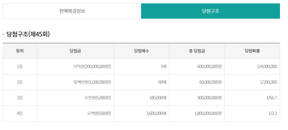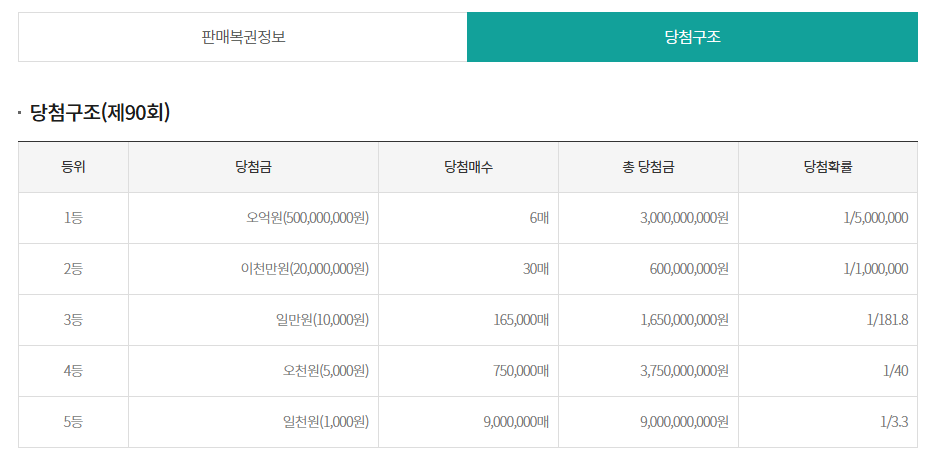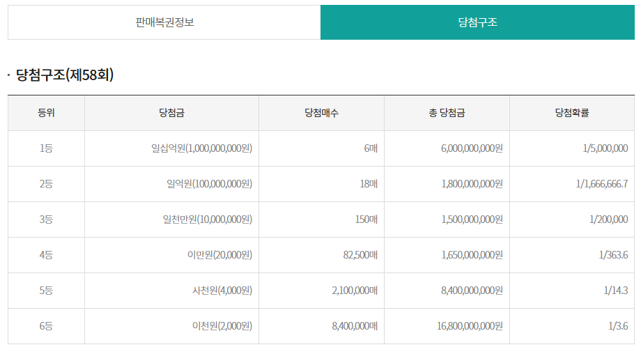 복권 뒷면에 당첨 확률이 명시되어 있으니 확인 후 구매하세요.