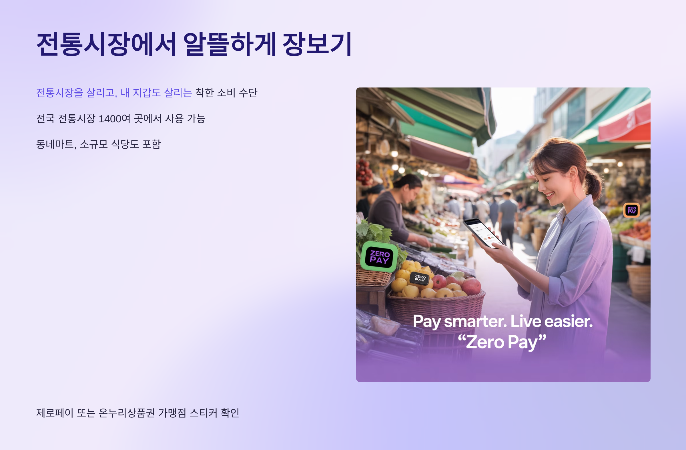 📍 가맹점 여부 확인: 전통시장이라고 무조건 되는 건 아니에요! ‘제로페이’ 또는 ‘온누리상품권’ 로고 확인하세요.