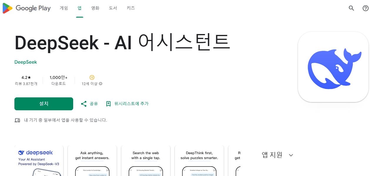 먼저 딥시크 앱을 설치해야 해요. 안드로이드 사용자는 아래 링크에서 Google Play 스토어를 통해 다운로드할 수 있어요.