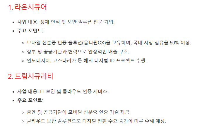 1. 라온시큐어: 생체인식 및 보안 솔루션의 선두 기업으로, 정부 디지털 신분증 프로젝트 주요 파트너입니다.