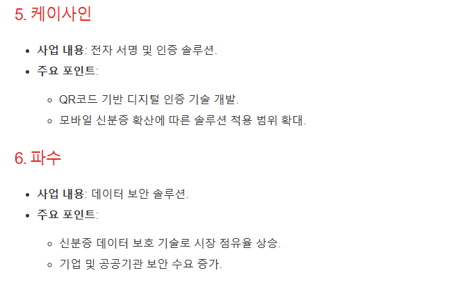 6. 케이사인: QR코드 기반 인증 기술을 보유, 디지털 신분증 인증 솔루션을 제공합니다.