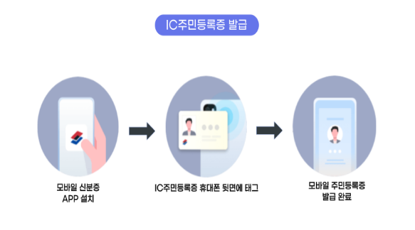 2. IC칩 내장 주민등록증 활용: 휴대폰에 접촉하여 발급, 기기 변경 시에도 재방문이 필요 없습니다.