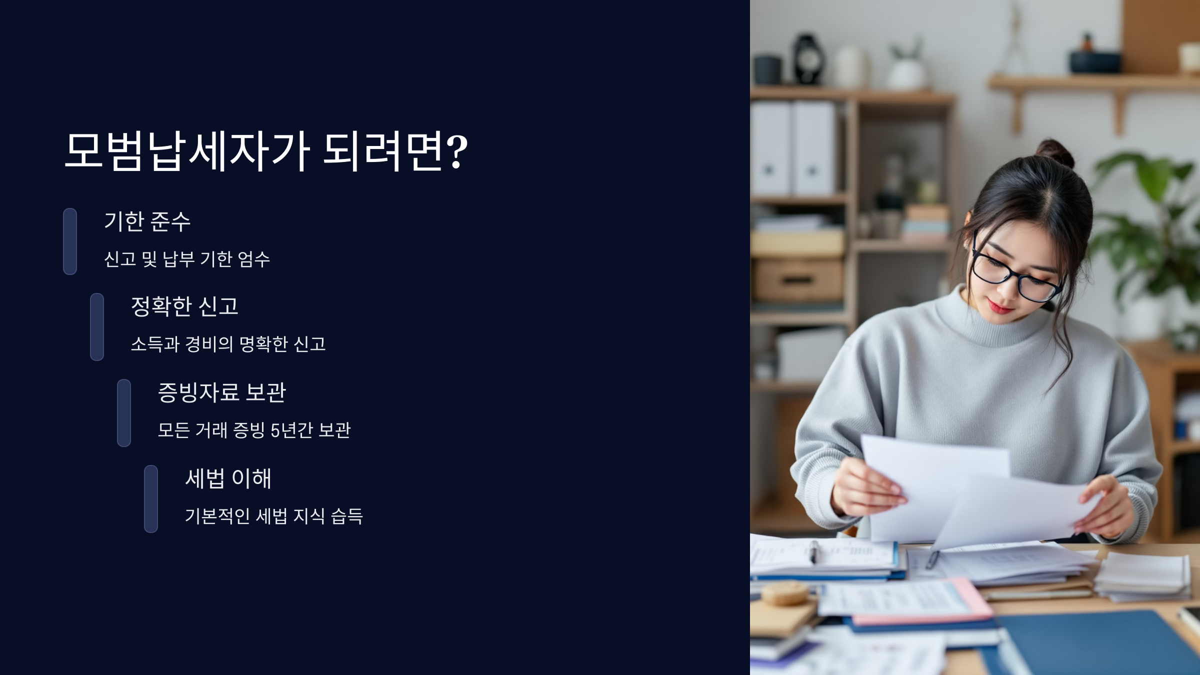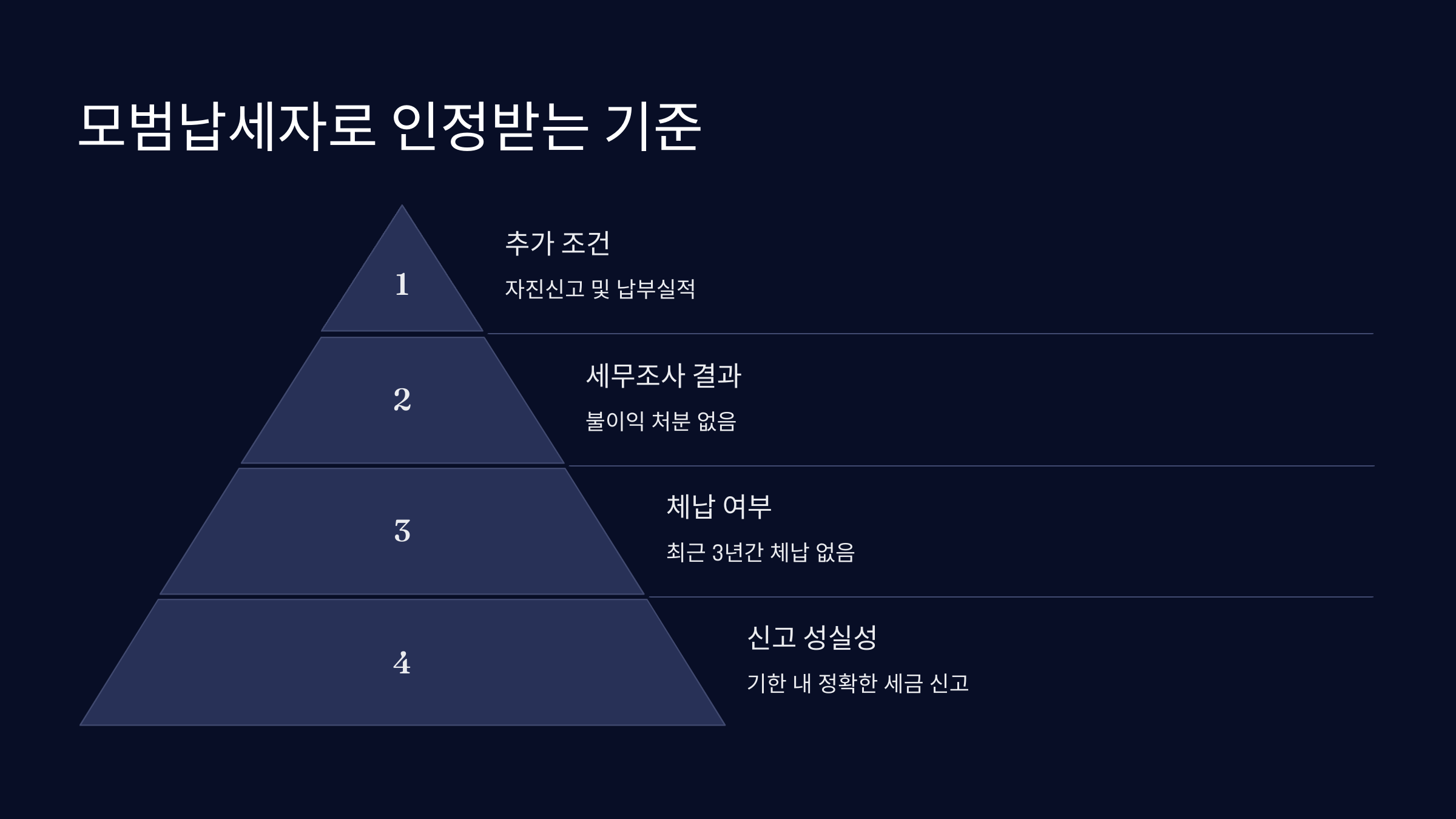 이 기준을 잘 지키면 국세청에서 모범납세자로 선정될 가능성이 높아져요! 💡