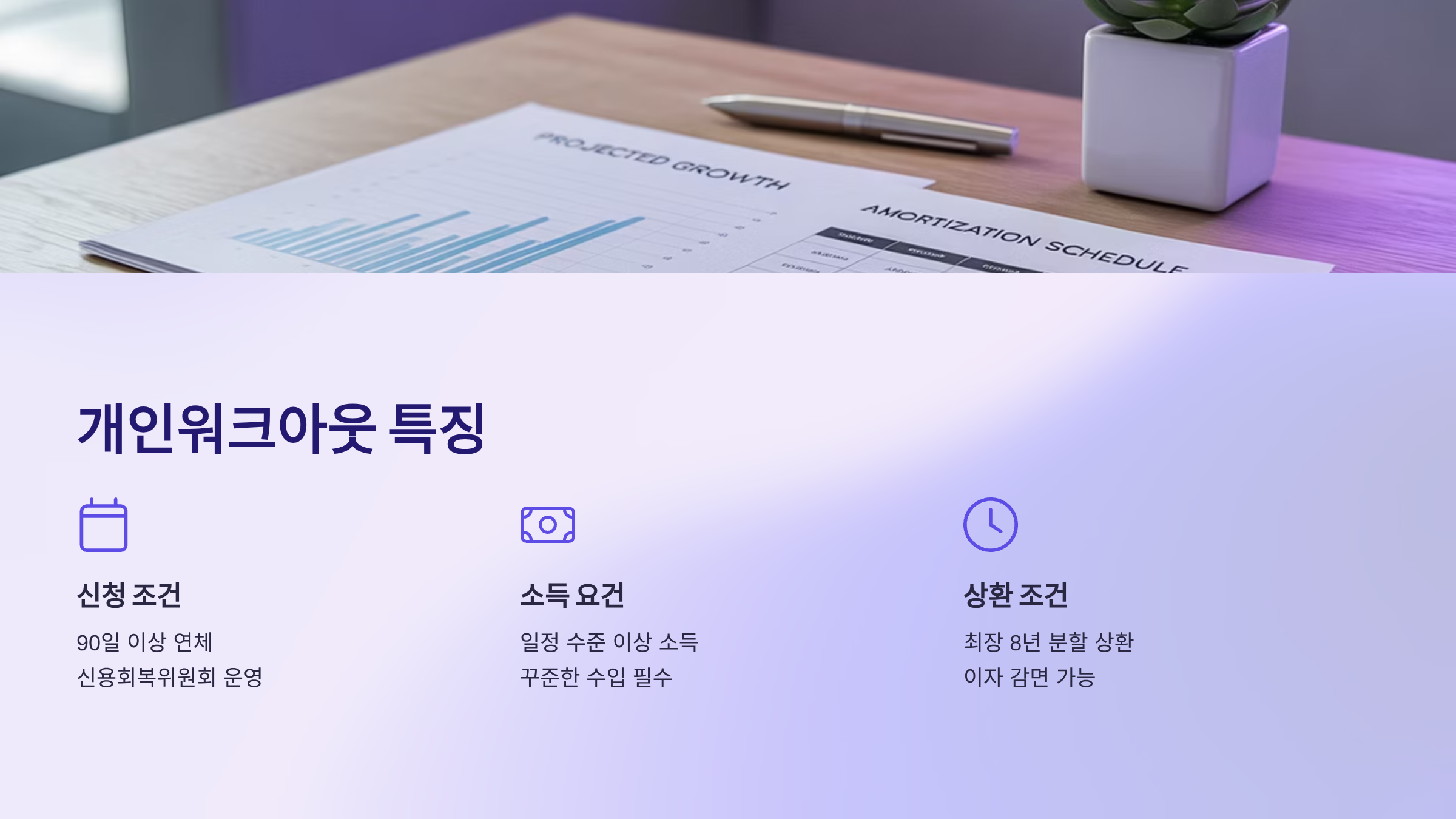 | 개인워크아웃 | 장기 연체, 일정 소득 | 연체 직후, 급여소득 있을 때 | 이자 감면 + 장기 상환 조정(최대 8년) | 원금 감면 거의 없음 |