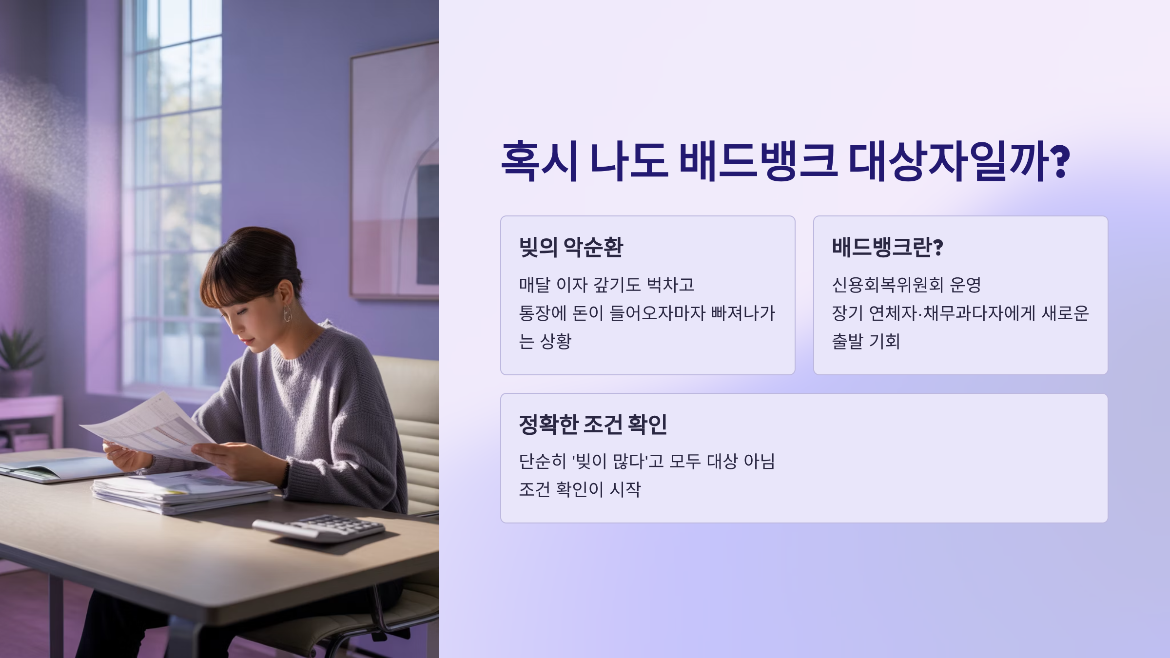 👉 배드뱅크 신청방법 A to Z 보러가기혹시 나도 배드뱅크 대상자일까?