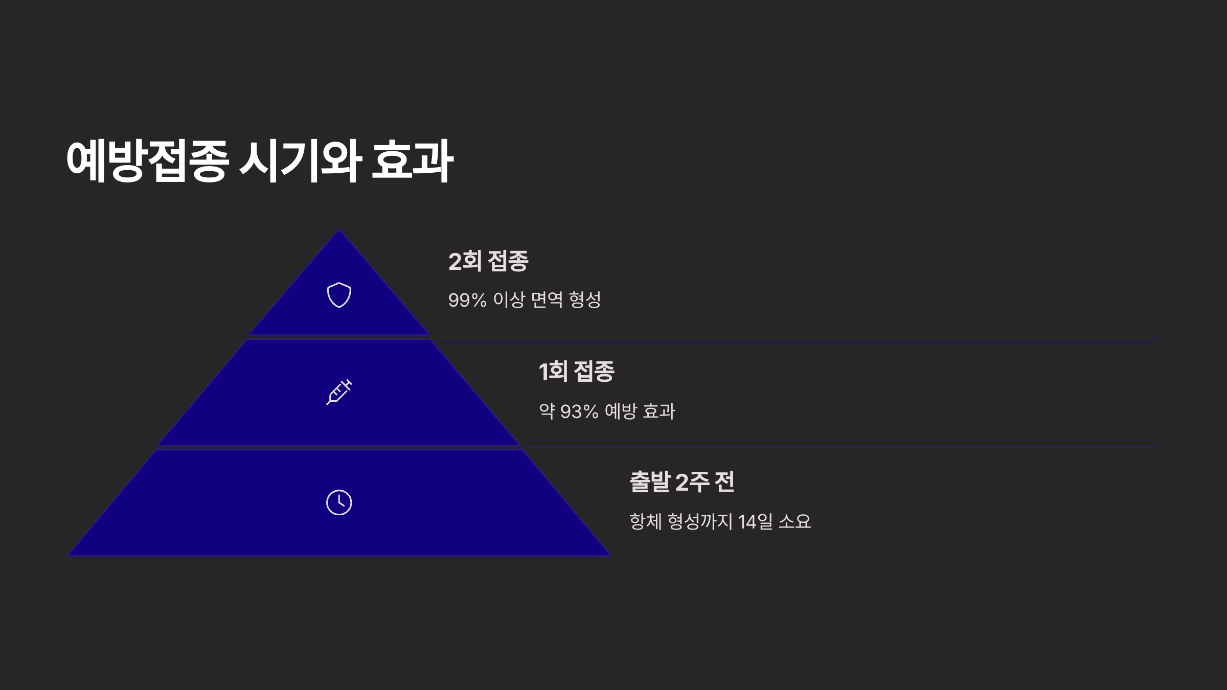 A4. 항체 형성까지 최소 14일이 걸리기 때문에, 출국 2주 전에는 접종을 완료하는 게 안전해요.