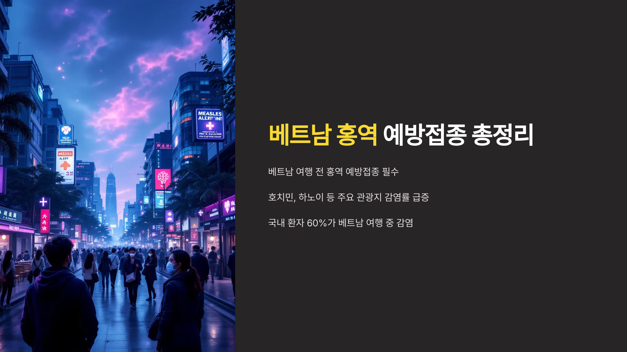 최근 6개월간 베트남 내 홍역 감염률이 급격히 증가하면서, 예방접종의 중요성이 그 어느 때보다 커졌어요. 특히 한국인이 자주 방문하는 호치민, 다낭, 하노이 등의 지역은 감염률이 매우 높은 수준으로 나타났답니다.