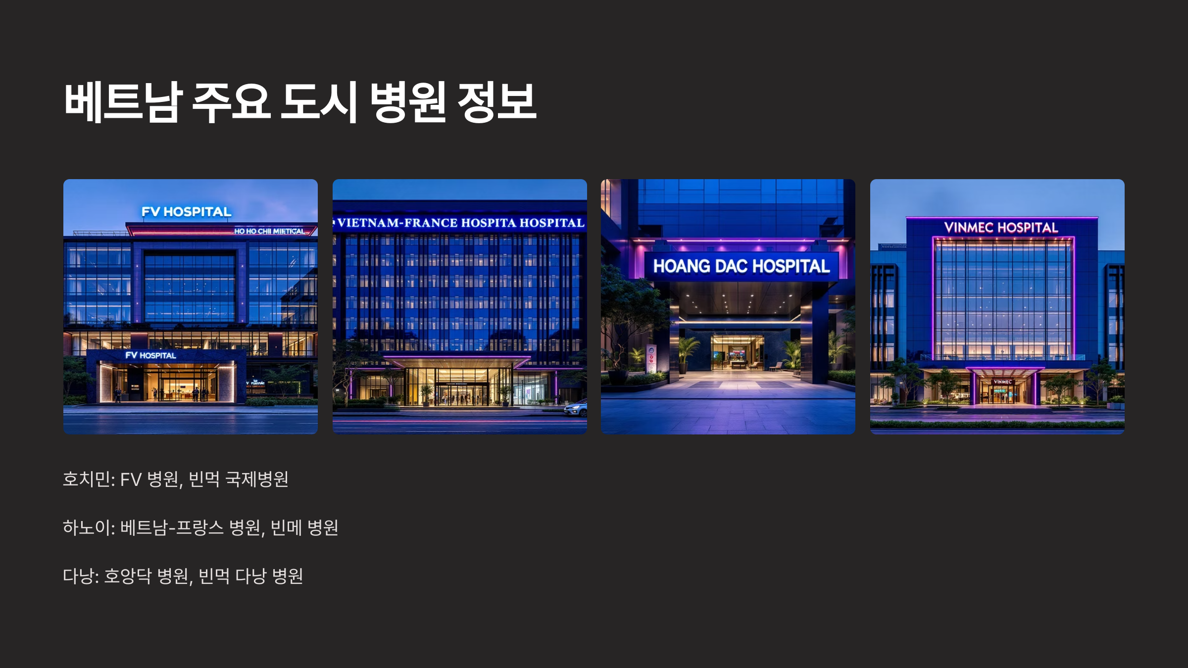 베트남 외교부 홈페이지나 주베트남 대한민국 대사관 홈페이지에서 긴급 진료 병원 리스트도 확인해두면 좋아요.