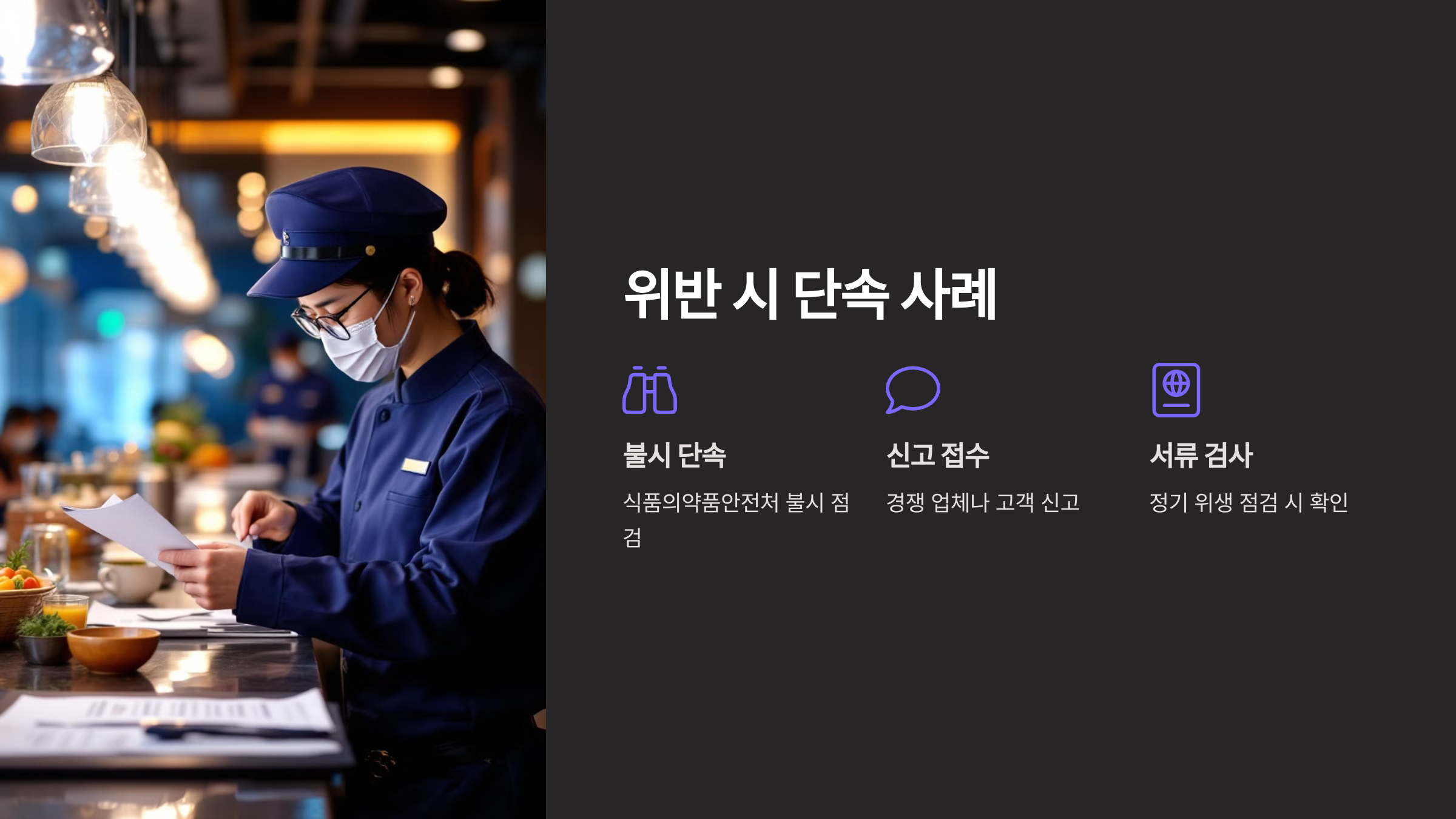 - 🔍 단속 빈도: 보건소 및 위생 담당 기관에서 정기적으로 점검 진행.