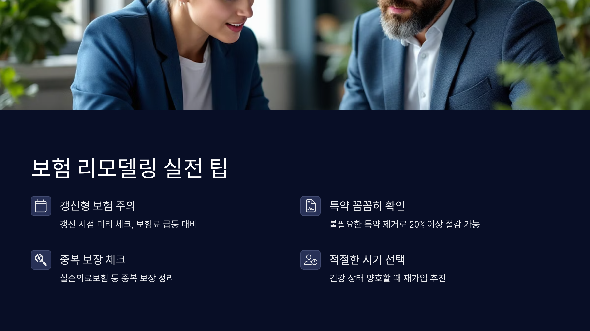 이렇게 리모델링은 단순히 ‘절약’뿐만 아니라 ‘보장 강화’의 의미도 있어요. 돈만 아끼는 게 아니라, 더 든든하게 준비하는 거죠. 💪