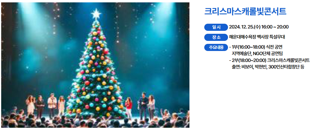 - 2부: 비보이 팀, 가수 박현빈, 300인의 산타 합창단이 참여하는 캐롤 콘서트