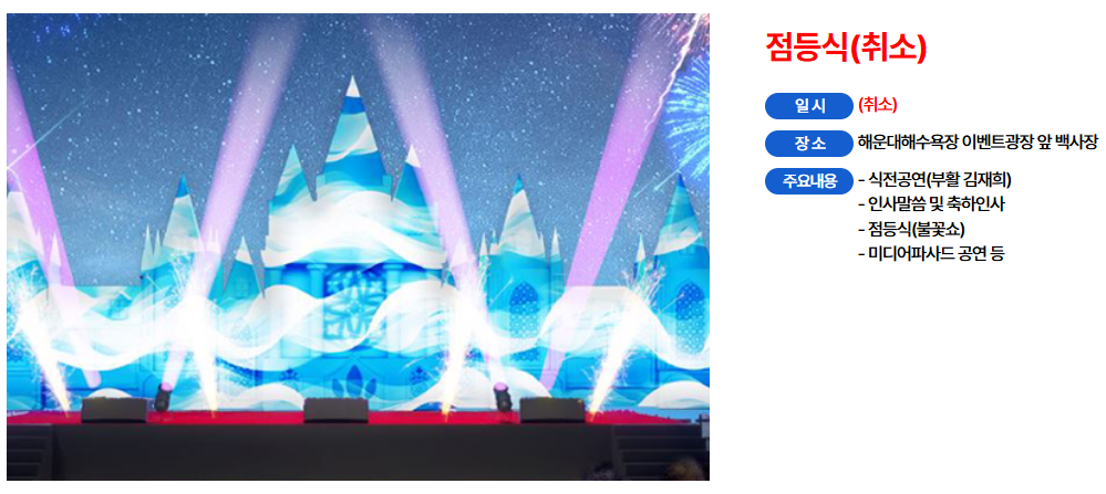 - 장소: 해운대 해수욕장 백사장 특설무대