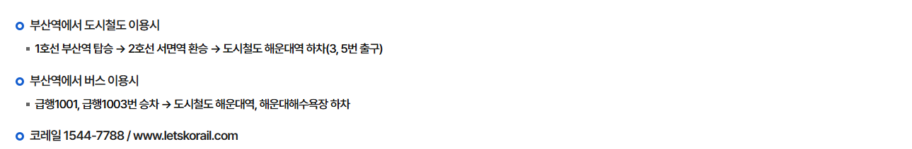 - 지하철: 부산 2호선 해운대역에서 도보 10분