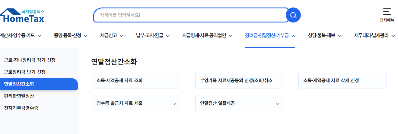 연말정산은 국세청 연말정산 간소화 서비스를 통해 필요한 자료를 쉽게 확인할 수 있습니다.