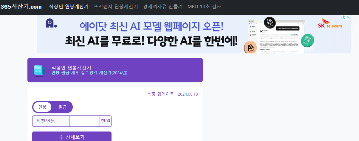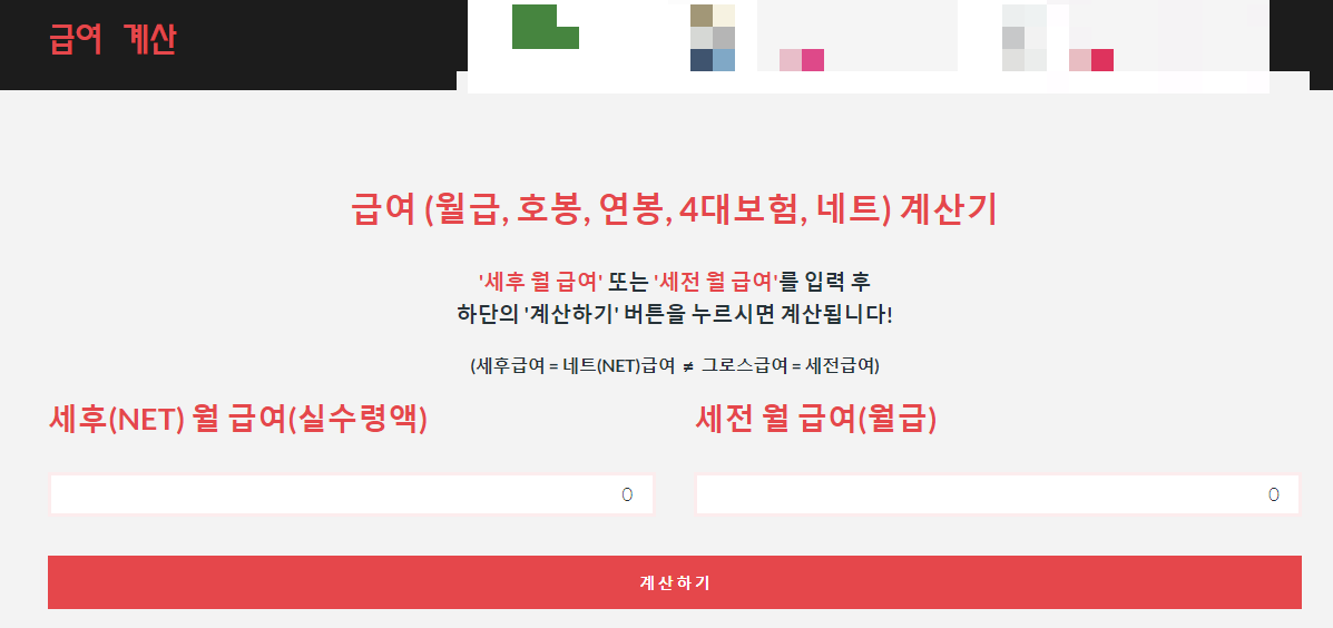 계산기를 누르면 세후계산기 사이트로 갑니다.