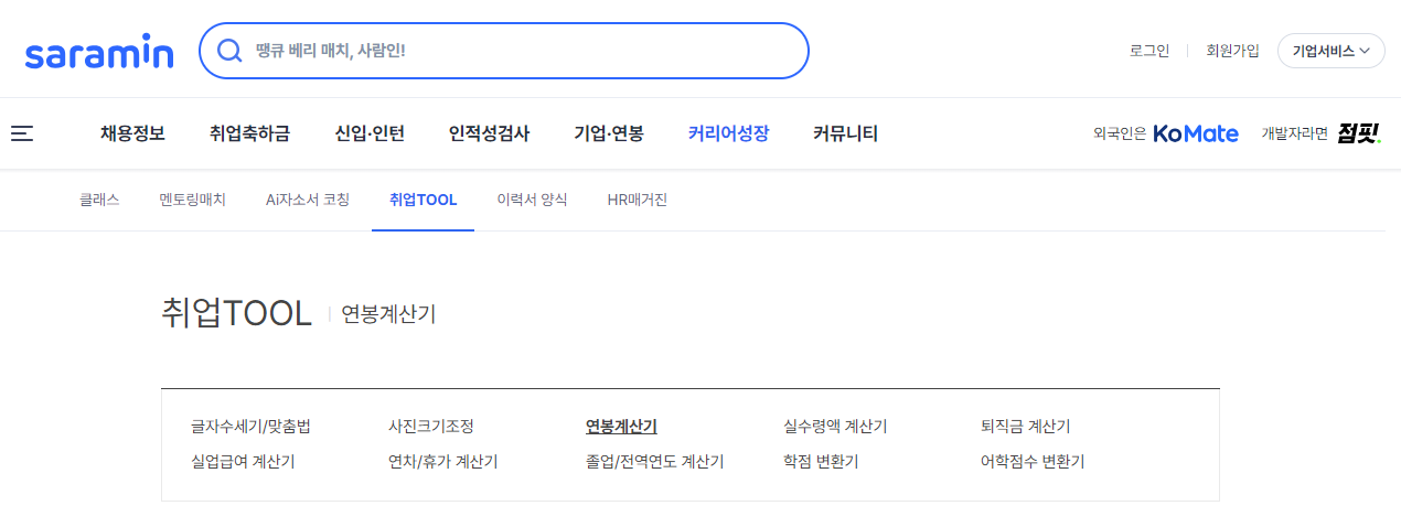 사람인 연봉 계산기연봉과 부양가족 수를 입력해 월 실수령액과 공제 항목을 상세히 계산합니다.