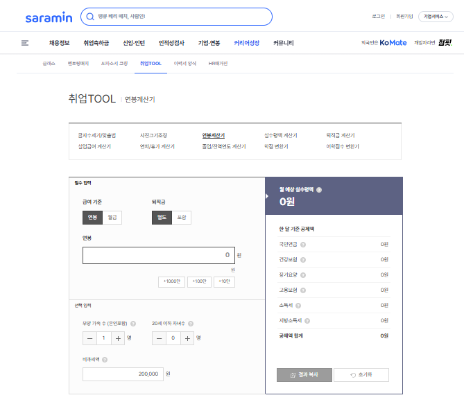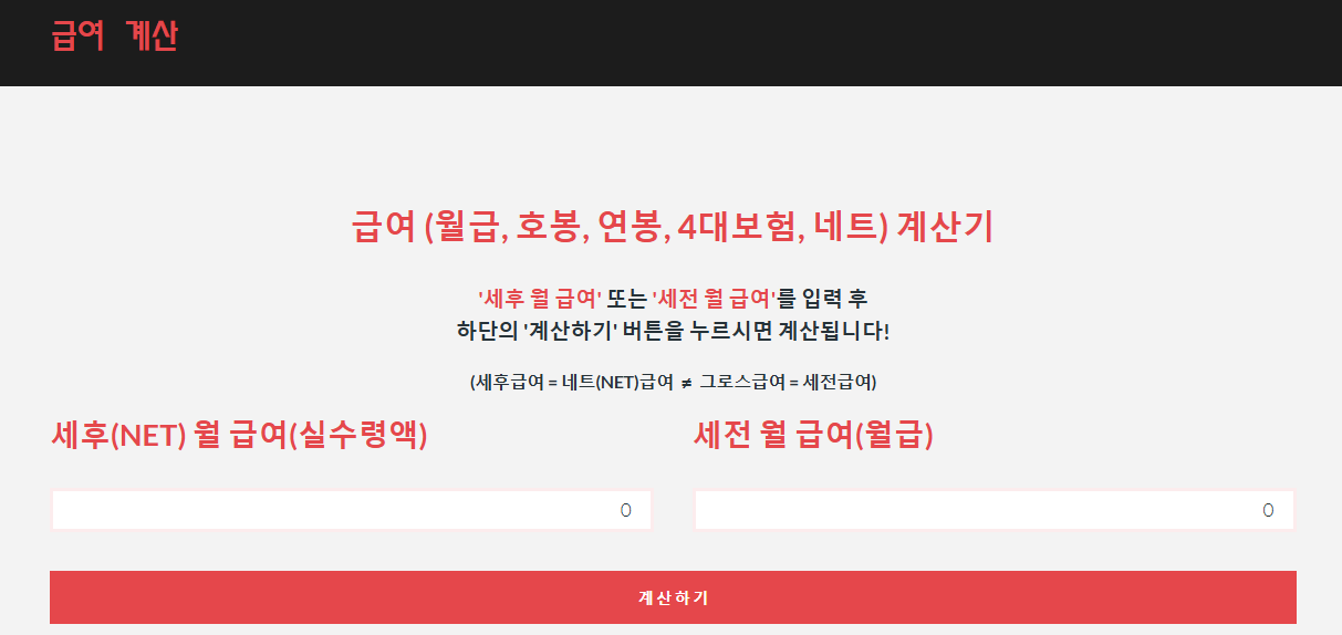 대부분의 계산기는 소득세와 지방세를 포함해 계산합니다.