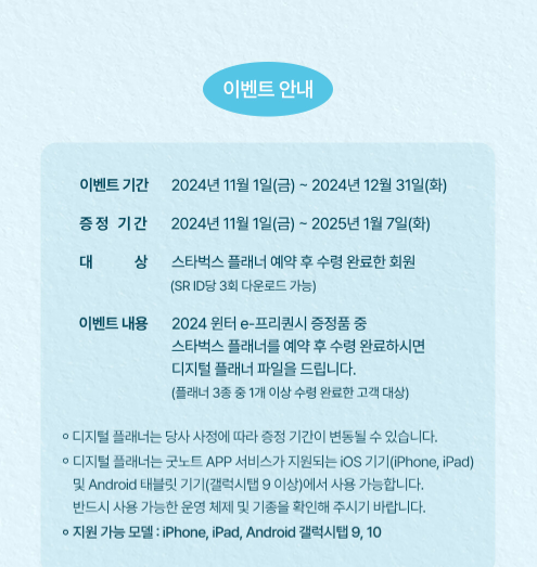- 증정품: 플래너, 캘린더, 포터블 램프 중 택 1