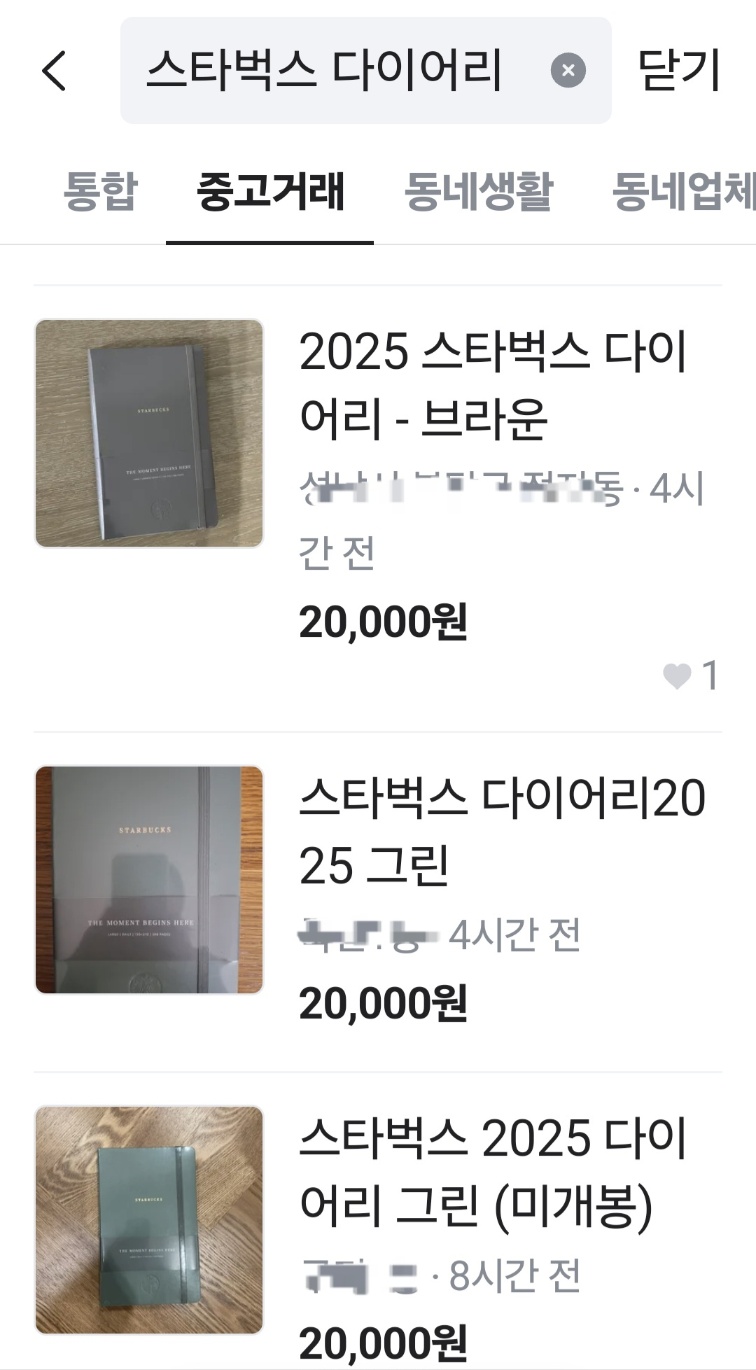 스타벅스 다이어리의 중고 거래 현황