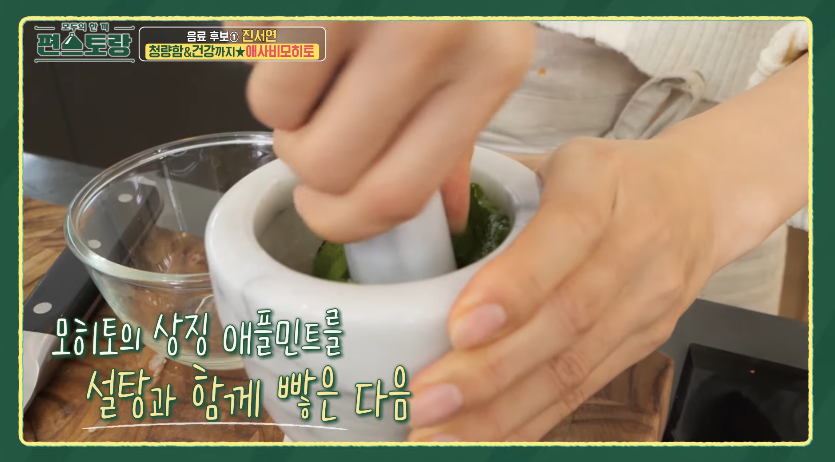 이제부터는 편스토랑 방송을 캡처한 사진으로 진서연씨의 무알콜 애사비 모히토 보여 드릴께요.