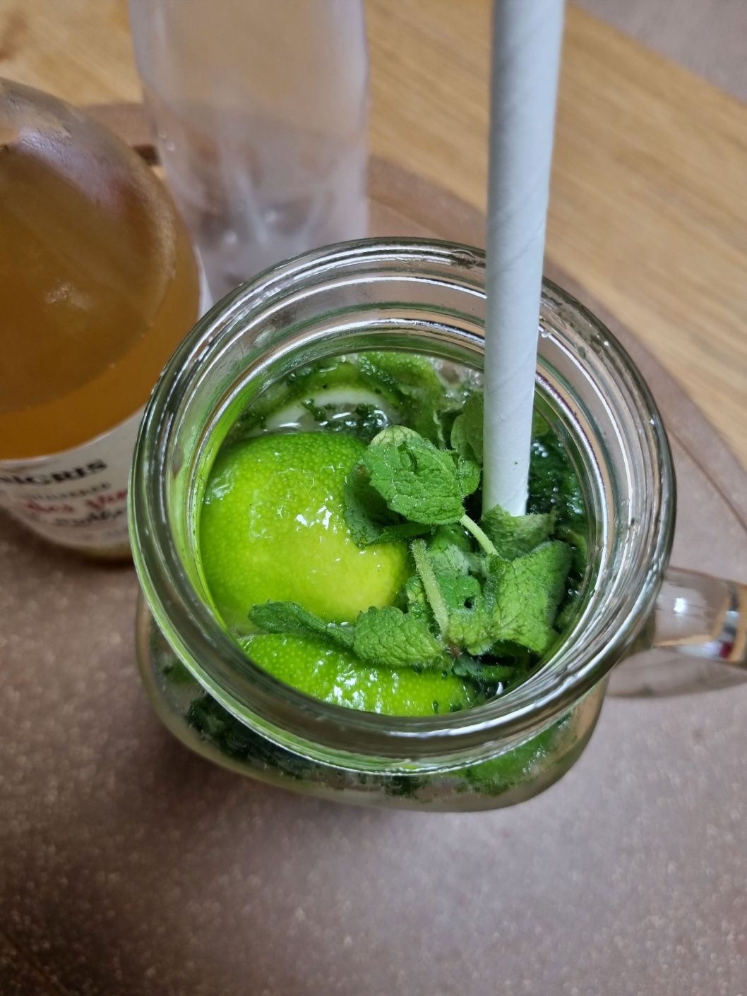 애사비, 설탕(저는 유기농 노랑 설탕 썼어요), 애플민트, 라임, 탄산수