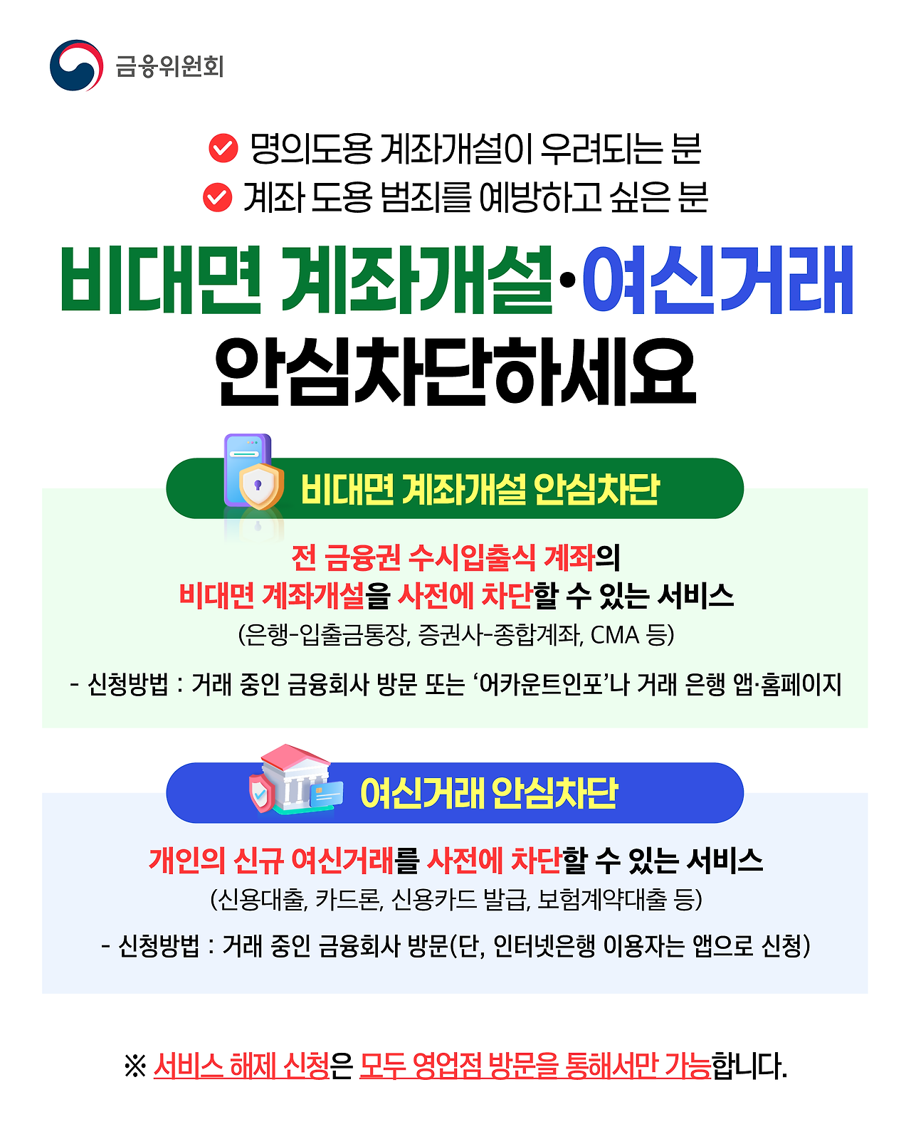 | 장점 | 대출·카드 사전 차단, 명의도용 방지, 심리적 안정 |