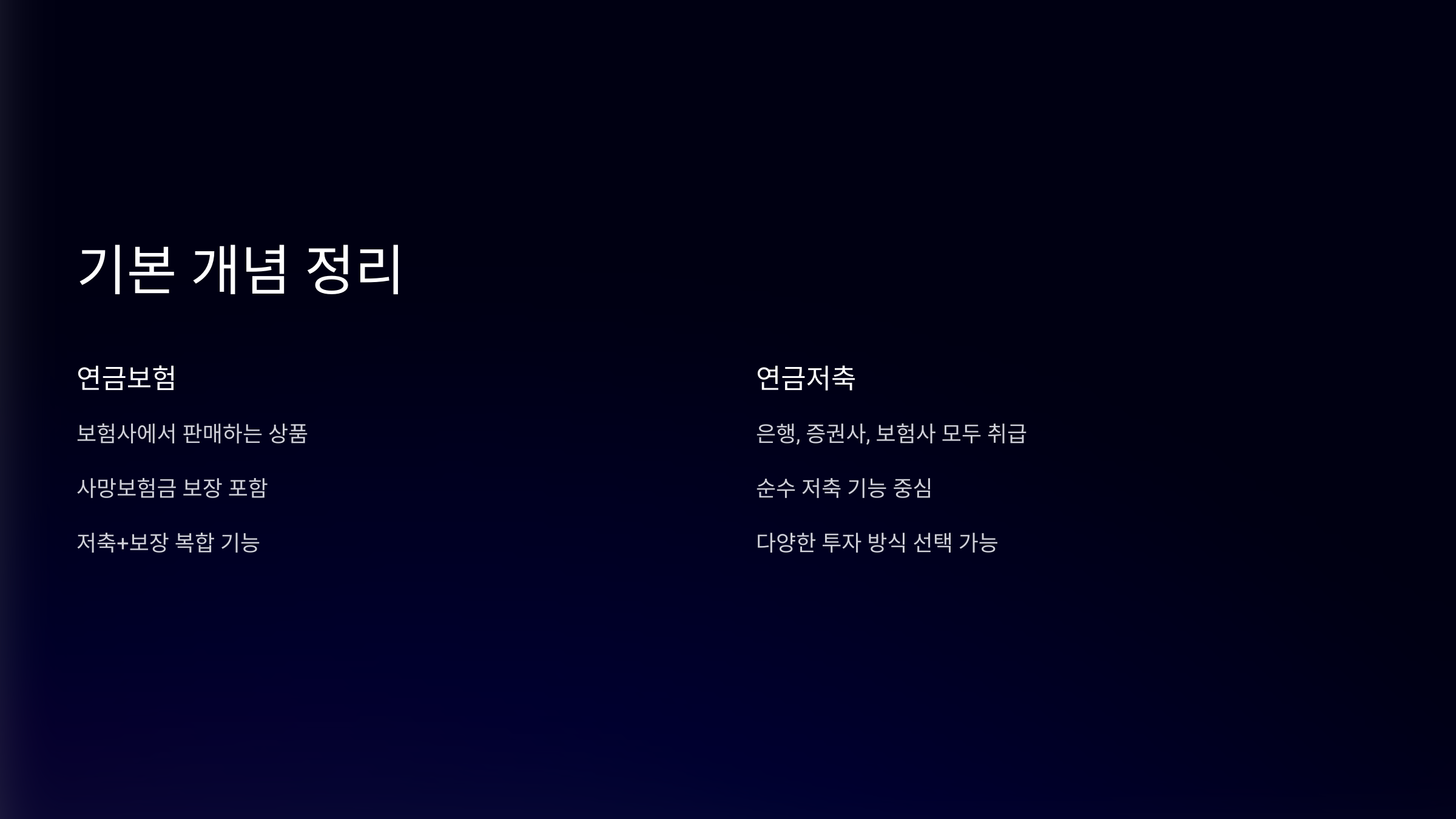 | 항목 | 연금저축 | 연금보험 |