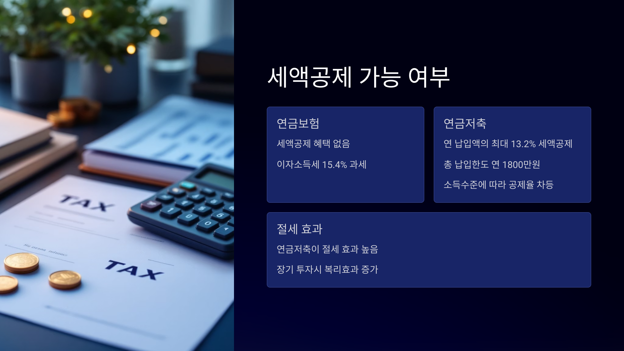 연금저축은 세액공제로 절세 효과가 크지만, 조건을 지켜야만 해요. 연금보험은 유연하고 가입이 쉬운 대신 세금 혜택이 없어요.